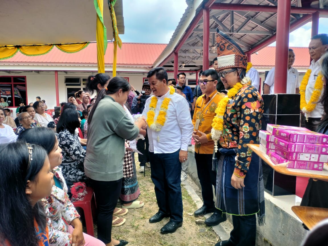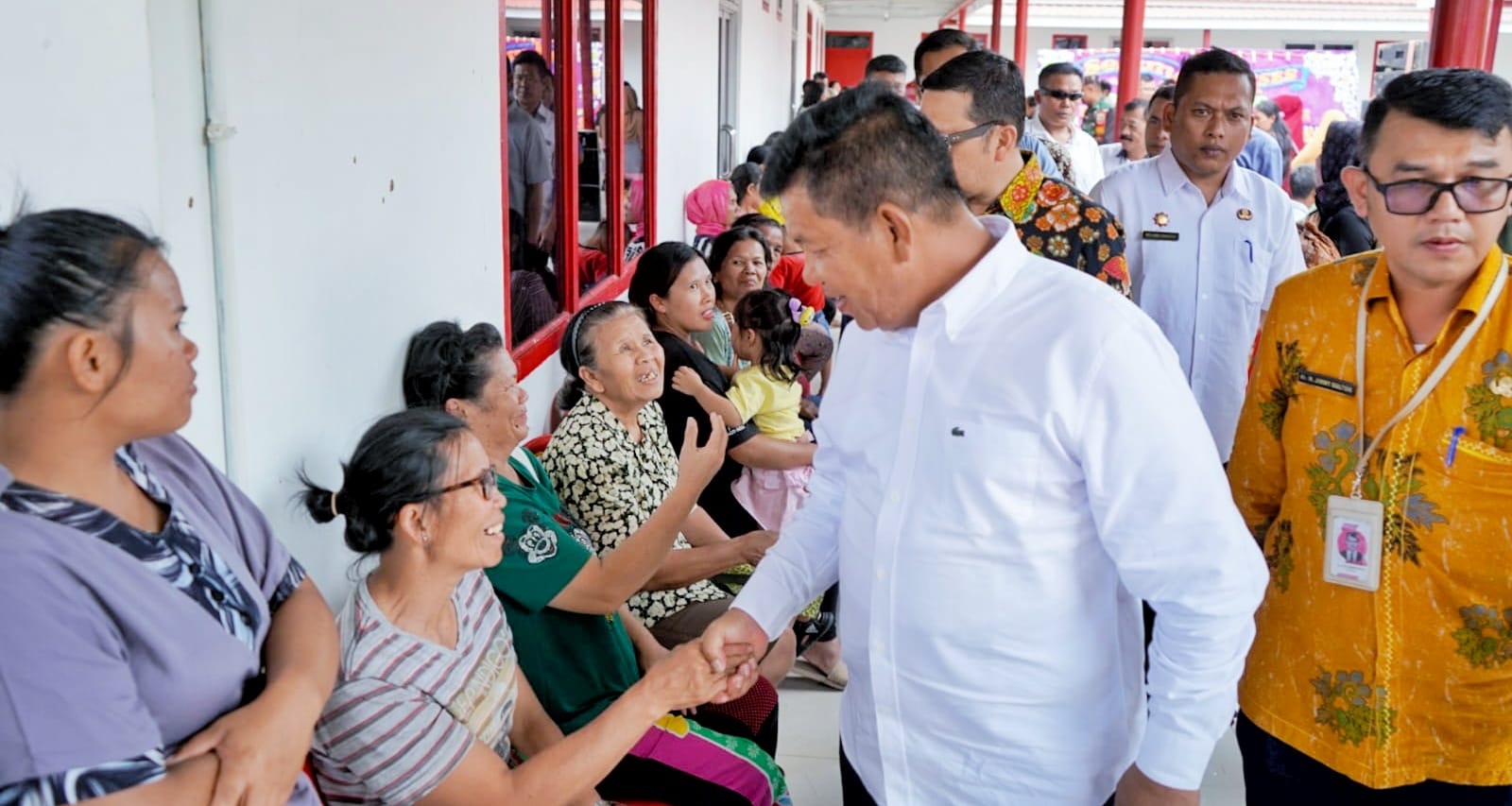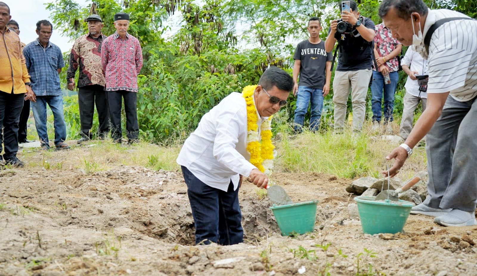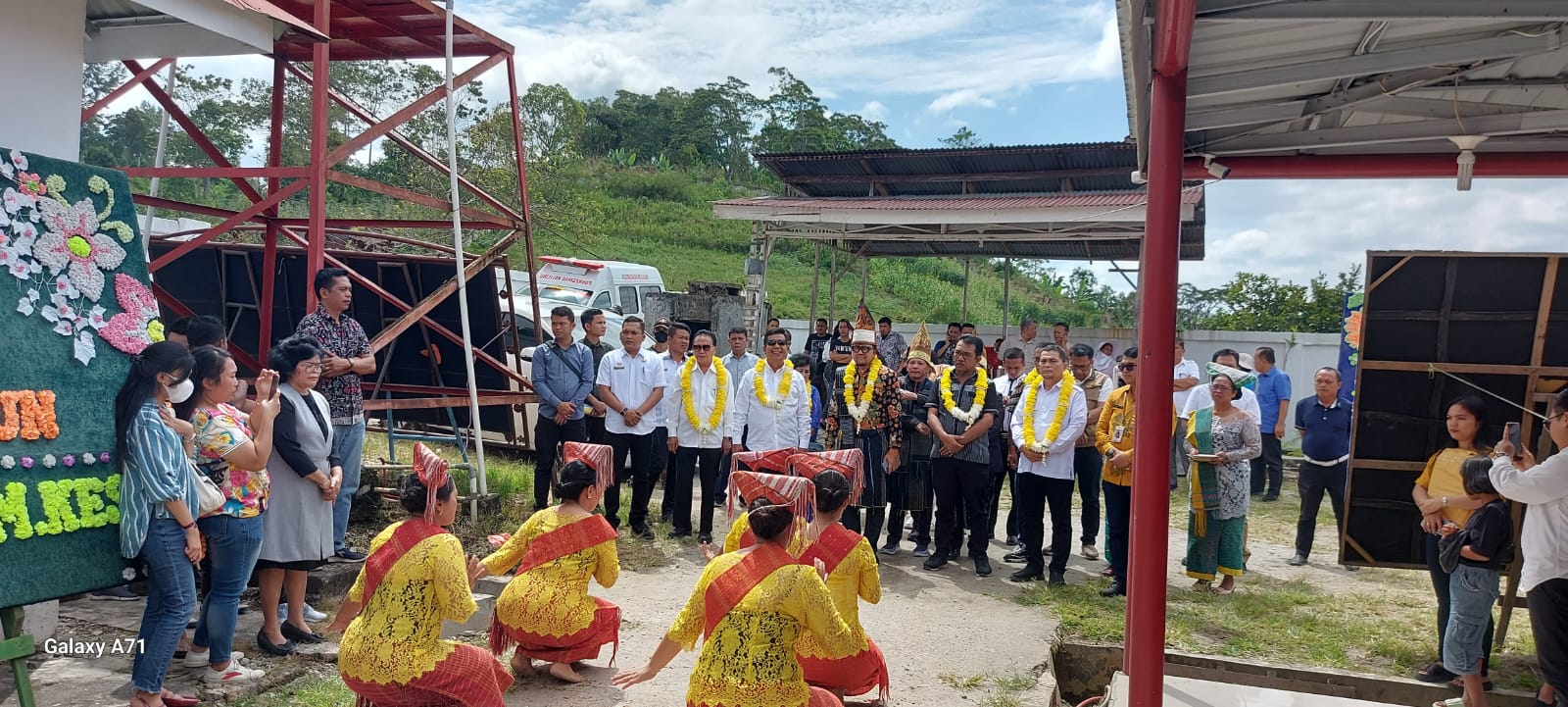 Bupati Simalungun Radiapoh Hasiholan Sinaga melakukan Peletakan Batu Pertama (Ground Breaking) dan pelayanan deteksi Kanker dini (Papsmear) di Jln Ompu Ranjo Sinaga, Kecamatan Girsang Simpangan Bolon, Kabupaten Simalungun, Sumut, Sabtu (9/2/2024).