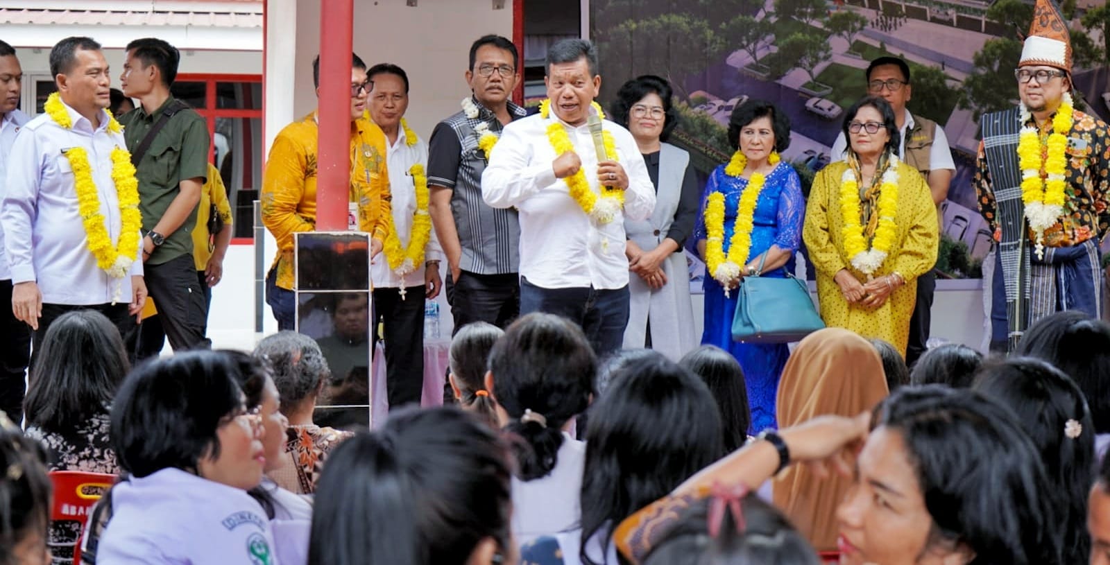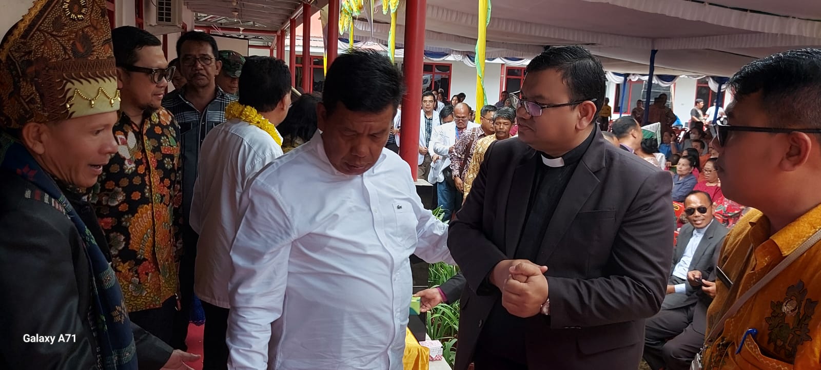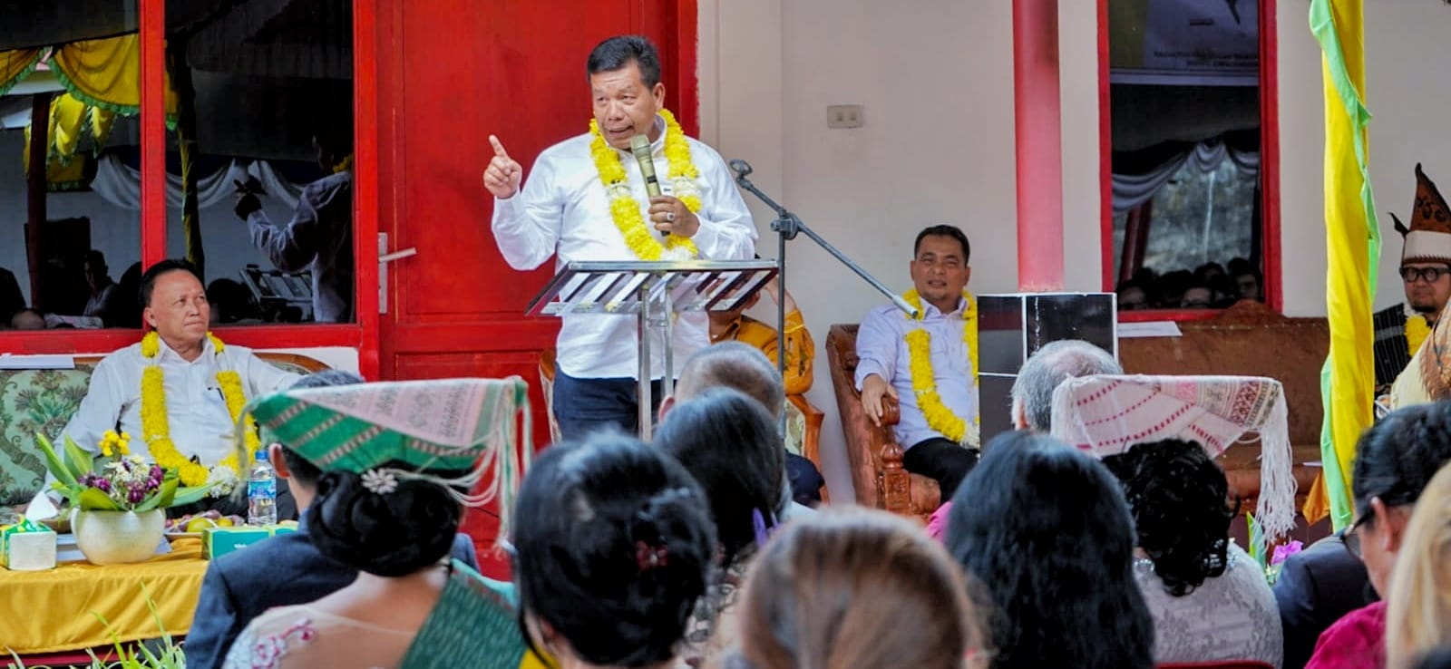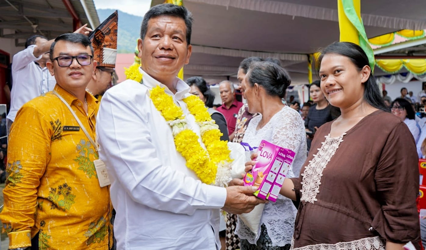 Bupati Simalungun Radiapoh Hasiholan Sinaga melakukan Peletakan Batu Pertama (Ground Breaking) dan pelayanan deteksi Kanker dini (Papsmear) di Jln Ompu Ranjo Sinaga, Kecamatan Girsang Simpangan Bolon, Kabupaten Simalungun, Sumut, Sabtu (9/2/2024).