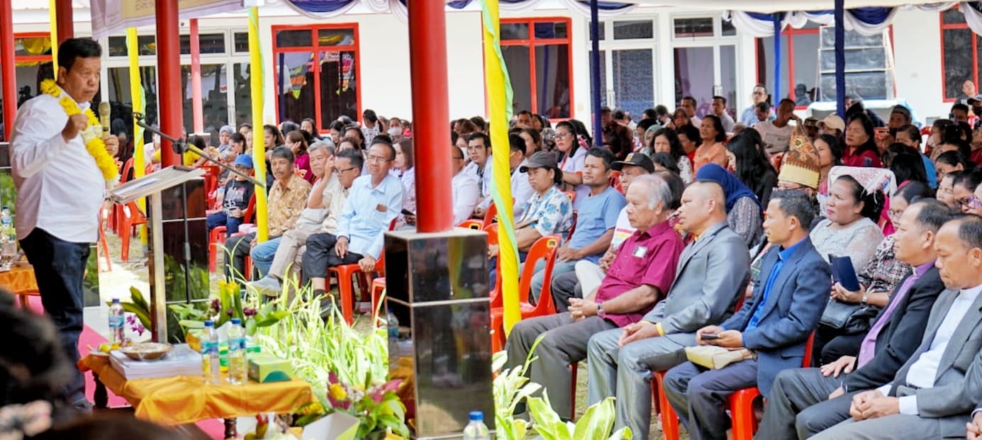 Bupati Simalungun Radiapoh Hasiholan Sinaga melakukan Peletakan Batu Pertama (Ground Breaking) dan pelayanan deteksi Kanker dini (Papsmear) di Jln Ompu Ranjo Sinaga, Kecamatan Girsang Simpangan Bolon, Kabupaten Simalungun, Sumut, Sabtu (9/2/2024).