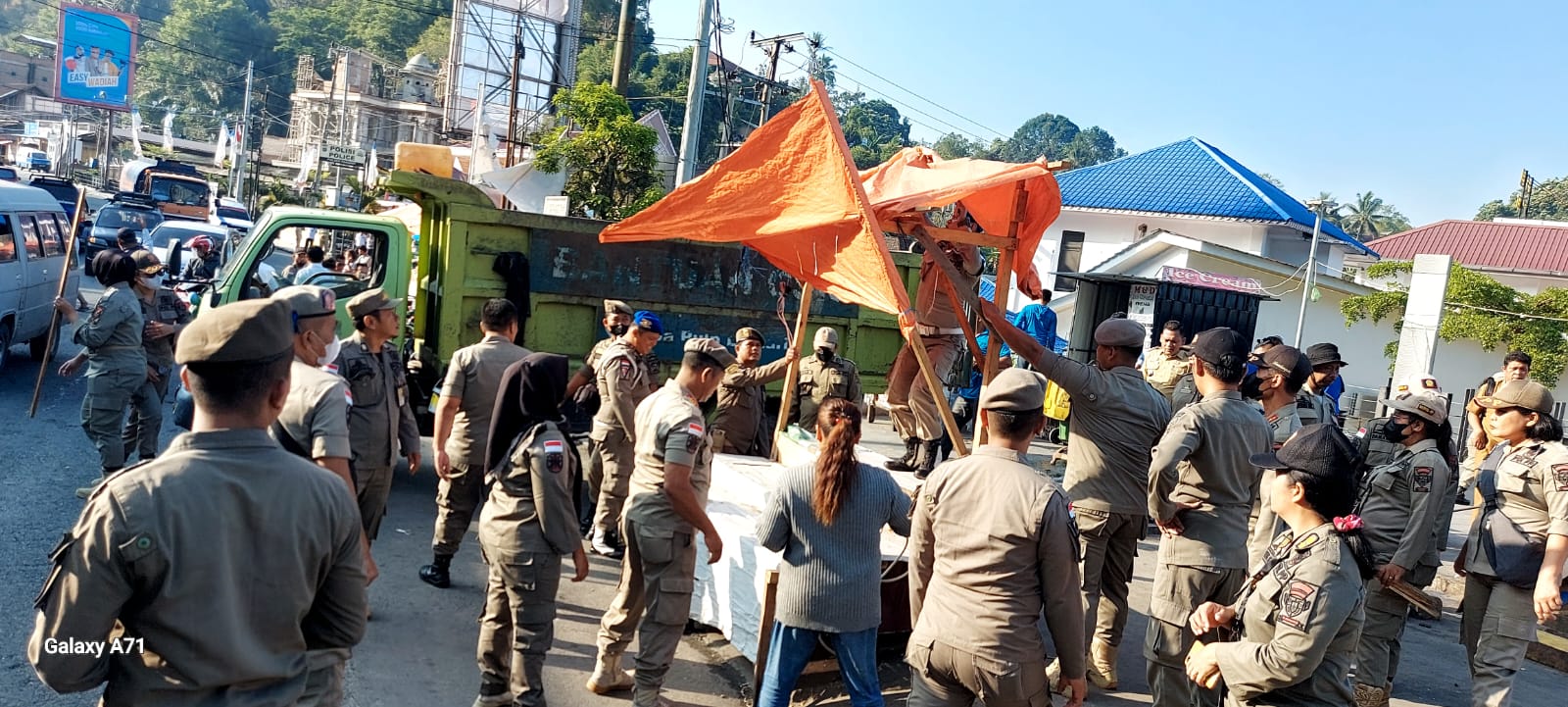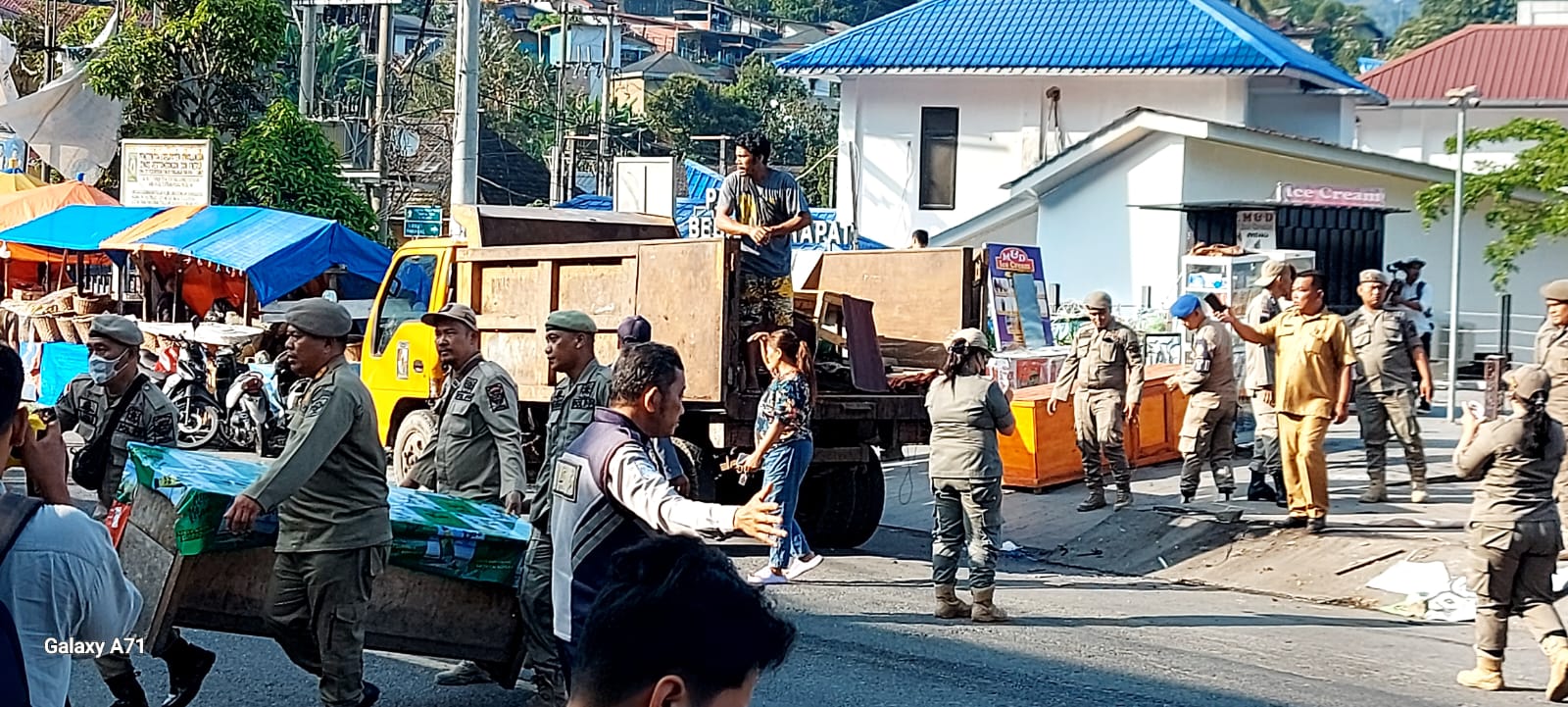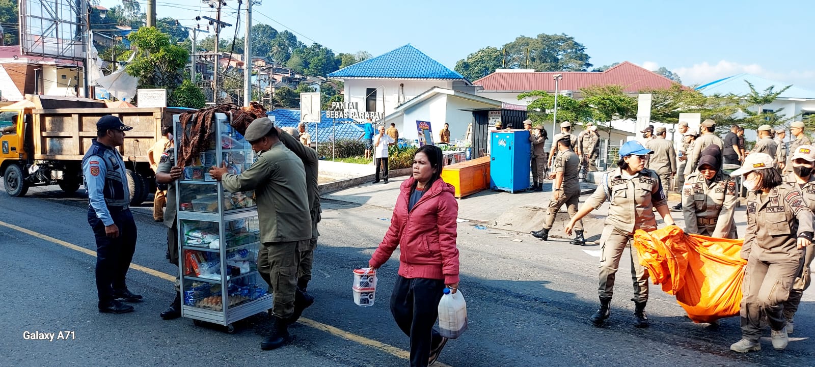 Setelah melakukan Tim melakukan Apel bersama di Parkiran RTP Parapat, tim langsung membongkar lapak dan tenda-tenda pedagang, mulai dari pedagang misop, pop mie, kopiteh, tenda jualan mangga dan lainnya langsung dibongkar dan barang-barangnya dikembalikan kepada pemiliknya yang kebetulan sudah menunggu aksi pembongkaran itu pula.