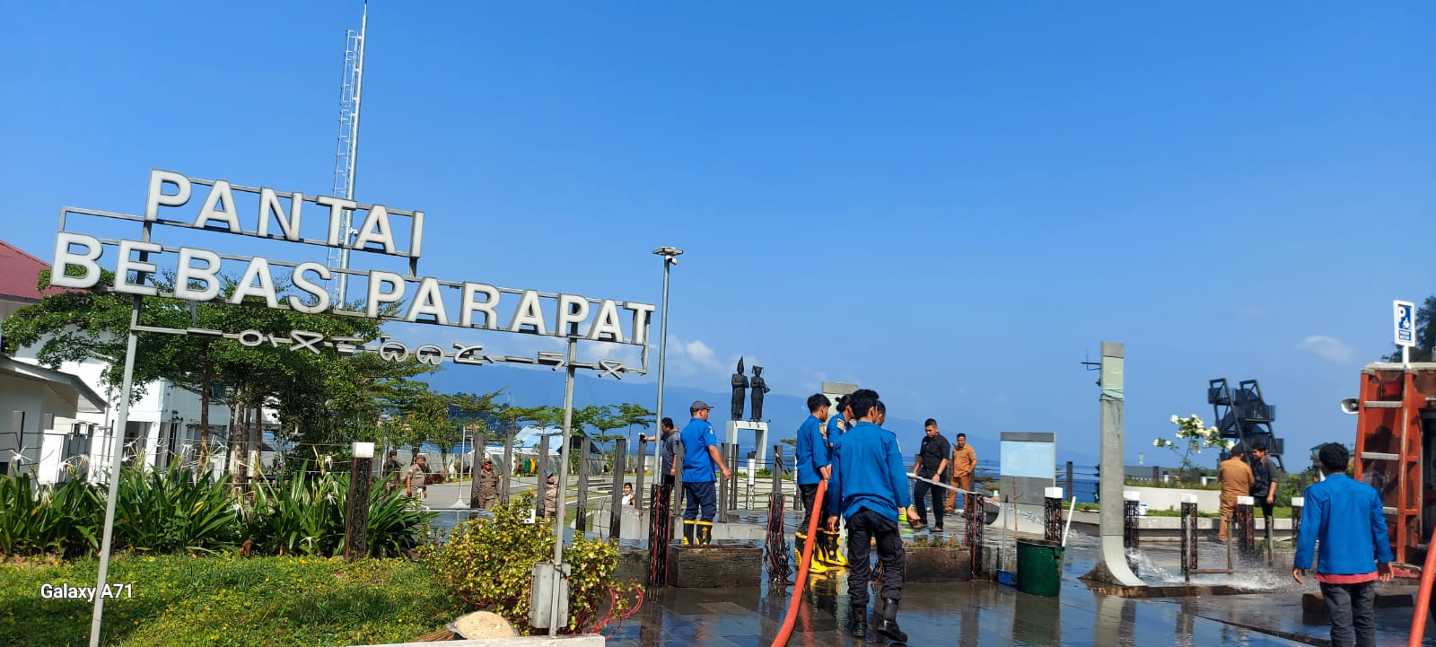 Plang bertuliskan “RTP Parapat” pun langsung terlihat jelas, berikut patung hiasan Pantai bebas. Plang nama RTP Parapat selama ini sudah tertutup tenda-tenda pedagang, dan kini ruang terbuka publik itu sudah tampak bersih, asri dan tak tampak kumuh lagi.