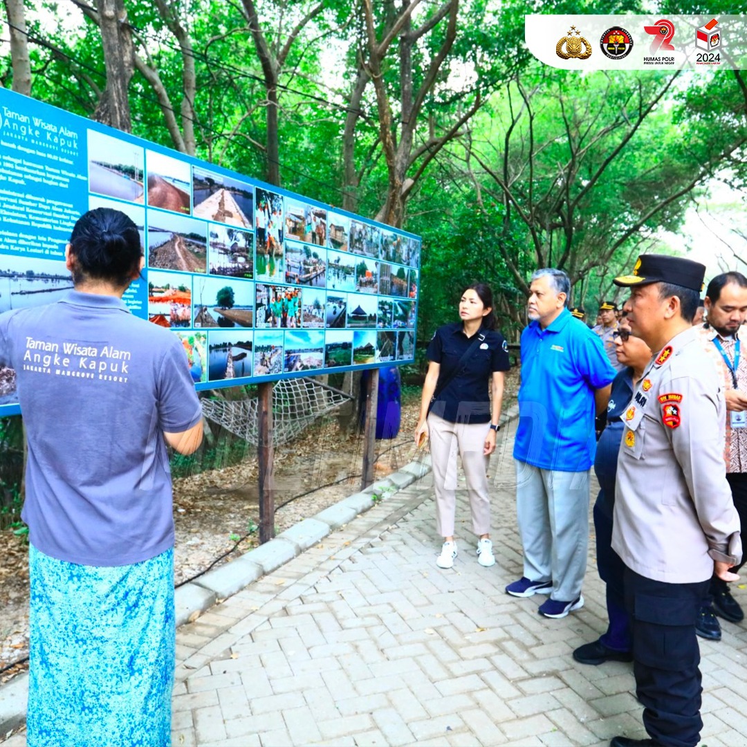 Menyambut HUT Ke-72 Humas Polri, Kadiv Humas Polri Irjen Pol. Dr. Sandi Nugroho, S.I.K., S.H., M.Hum., memimpin aksi penanaman mangrove di Taman Wisata Muara Angke, Jakarta Utara pada Jumat (13/10/2023).