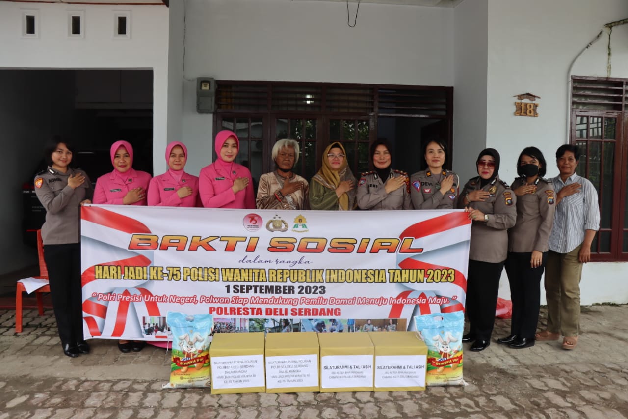 Dalam rangka menyambut hari jadi Polisi Wanita ke-75 yang jatuh pada tanggal 1 September mendatang, Ibu asuh Polwan Polresta Deli Serdang Ny. Novi Irsan Sinuhaji didampingi Wakil ketua Bhayangkari cabang kota Deli Serdang Ny. Silvia Agus Sugiyarso bersama pengurus Bhayangkari cabang kota Deli Serdang dan Perwira Koordinasi Polwan Polresta Deli Serdang Kompol Rosmeri serta perwakilan Polwan Polresta Deli Serdang menggelar serangkaian acara, satu diantaranya anjangsana ke rumah purnawirawan Polwan Polresta Deli Serdang, tepatnya dikediaman Aiptu (Purn) Herlina Siregar dan Aiptu (Purn) Asiyah di Jl.Beringin Gg.Semangka No.18 Psr VII Tembung. Selasa (15/08/2023).
