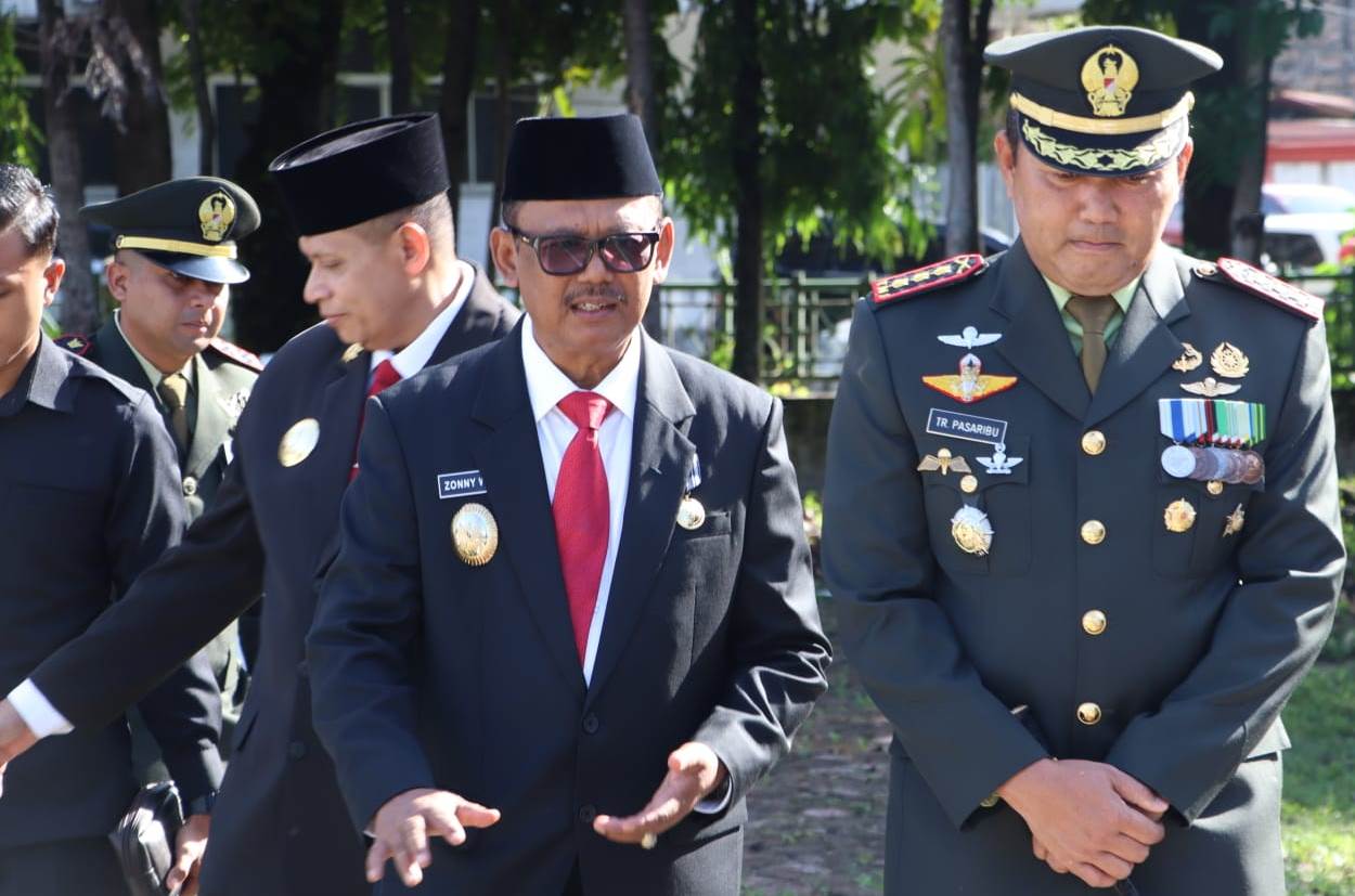 Pelaksana Tugas (Plt) Bupati Simalungun, H Zonny Waldi menghadiri Upacara Ziarah Nasional dalam rangka memperingati Hari Ulang Tahun (HUT) Ke-79 Tentara Nasional Indonesia (TNI) tahun 2024 bertempat di Taman Makam Pahlawan (TMP) Nagur, Pematangsiantar, Jumat (4/10/2024).