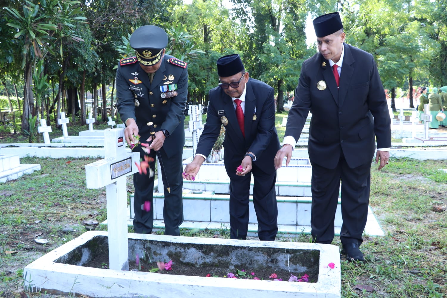 Dalam kesempatan itu, Plt. Bupati Simalungun, H. Zonny Waldi melakukan tabur bunga di beberapa makam pahlawan di TMP Nagur Pematangsiantar.