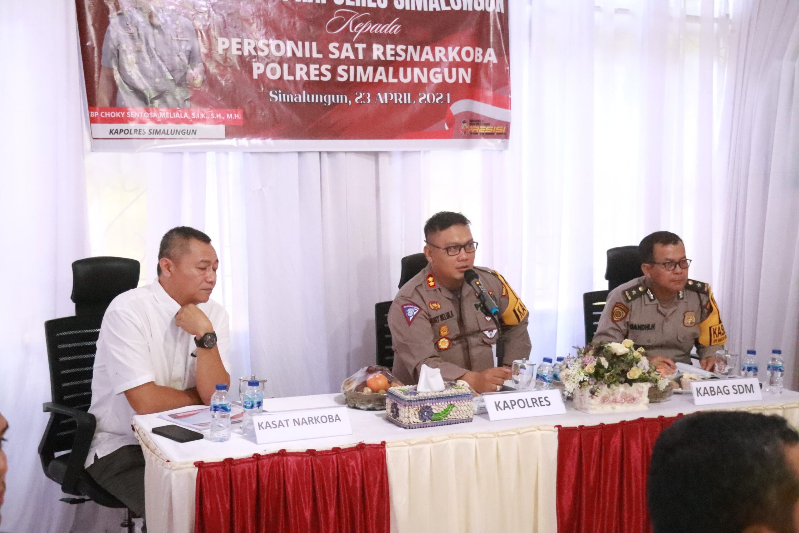 Dalam rangka memperkuat pemberantasan narkotika yang merupakan musuh bersama, Kapolres Simalungun, AKBP Choky Sentosa Meliala, S.I.K., S.H., M.H., secara langsung memimpin kegiatan Penyampaian Arahan kepada Personel Satuan Reserse Narkoba (Sat Resnarkoba) Polres Simalungun. Kegiatan ini dilaksanakan di Kantor Sat Resnarkoba Polres Simalungun, Jalan Jhon Horailam Saragih, Kecamatan Pamatang Raya, Kabupaten Simalungun, pada hari Selasa, 23 April 2024 mulai pukul 13.30 WIB hingga selesai.