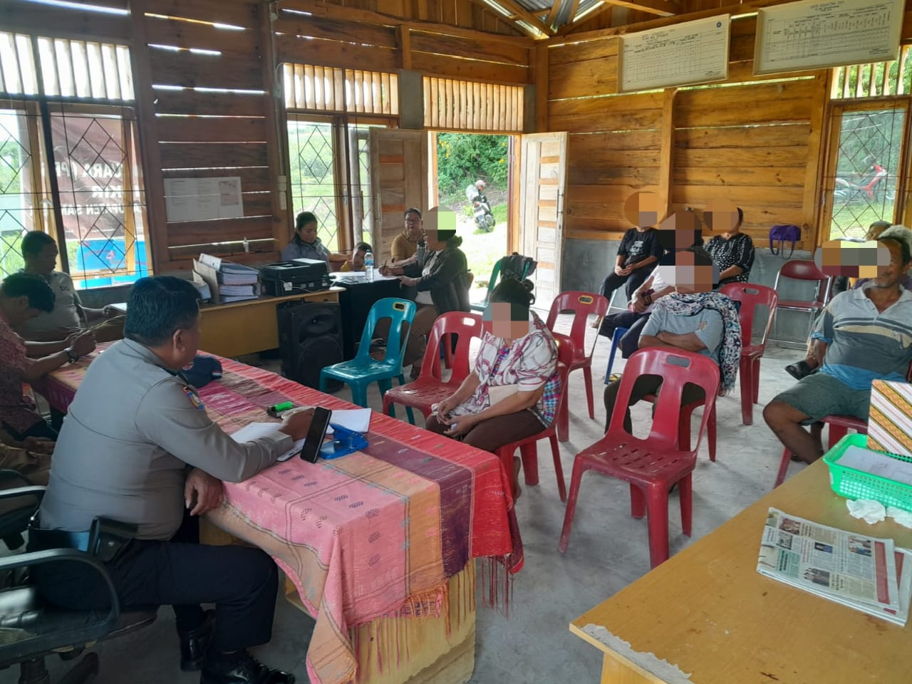 Bertempat di Kantor Desa Situngkir Kecamatan Pangururan Kabupaten Samosir, personel Sat Binmas Polres Samosir AIPDA H.L. Situmorang dan Bripka Marbeta Sianipar bersama pemerintah Desa Situngkir memediasi dua saudari kandung yang berselisih terkait pengelolaan sebidang lahan warisan orangtua mereka.