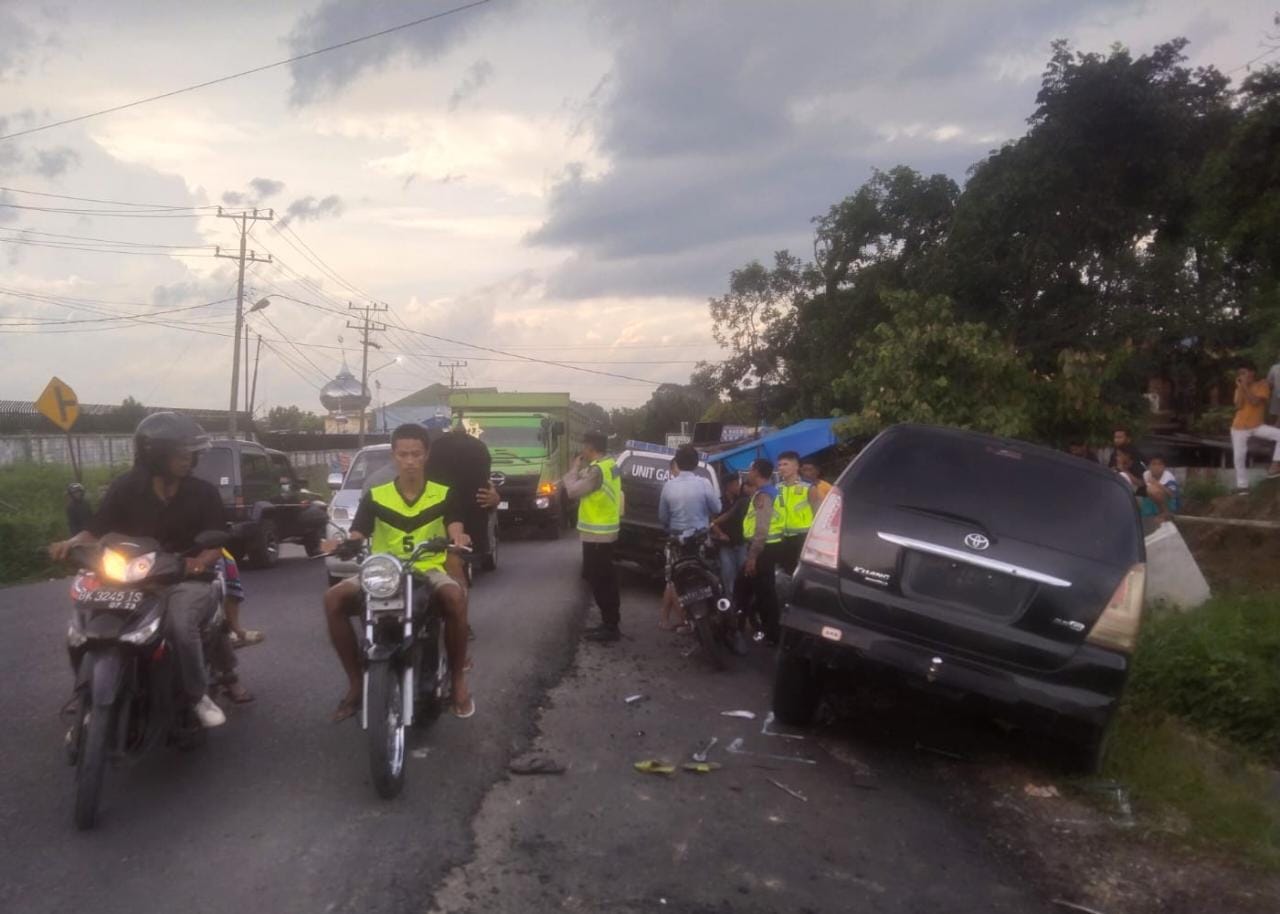Satu unit Mobil Toyota Kijang Innova BK 1416 IE yang dikemudikan oleh seorang mahasiswa, Muhammad Rizky Fadila, 20 tahun, beralamat di Jln Bhayangkara gang mesjid No 1 Medan Tembung tidak mengalami luka.