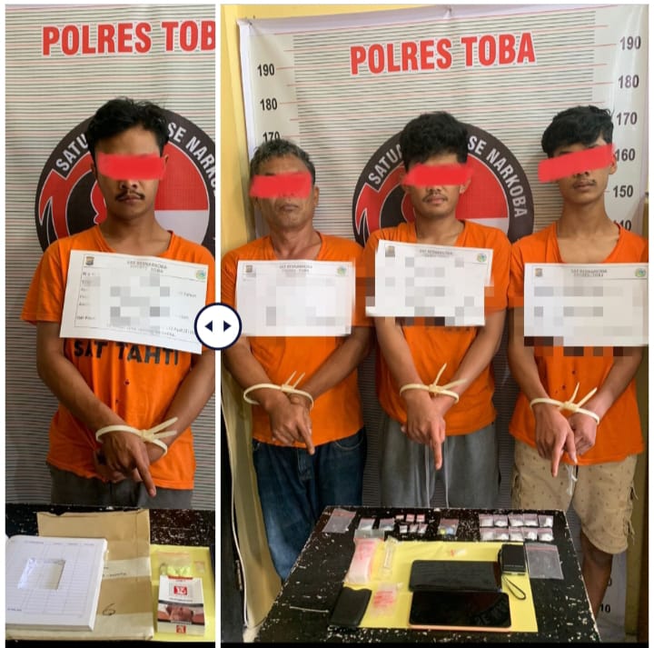 Sat Narkoba Polres Toba berhasil membekuk 4 pelaku diduga pengedar dan Penyalah Guna Narkoba jenis sabu dan Pil Ekstasi di 2 tempat berbeda yakni di Jln. Pasar Melintang, Bengkel Nila Mas, Kecamatan Laguboti dan Desa Ompu Raja Hutapea Kecamatan Laguboti Kabupaten Toba Provinsi Sumatera Utara, Jumat (3/11/2023) sekira pukul 22.00 Wib Malam hari.