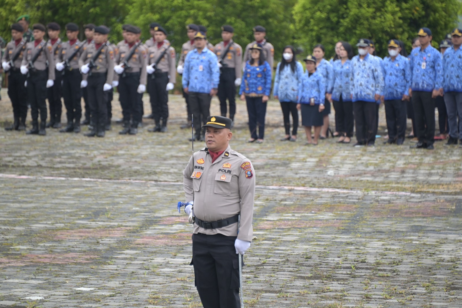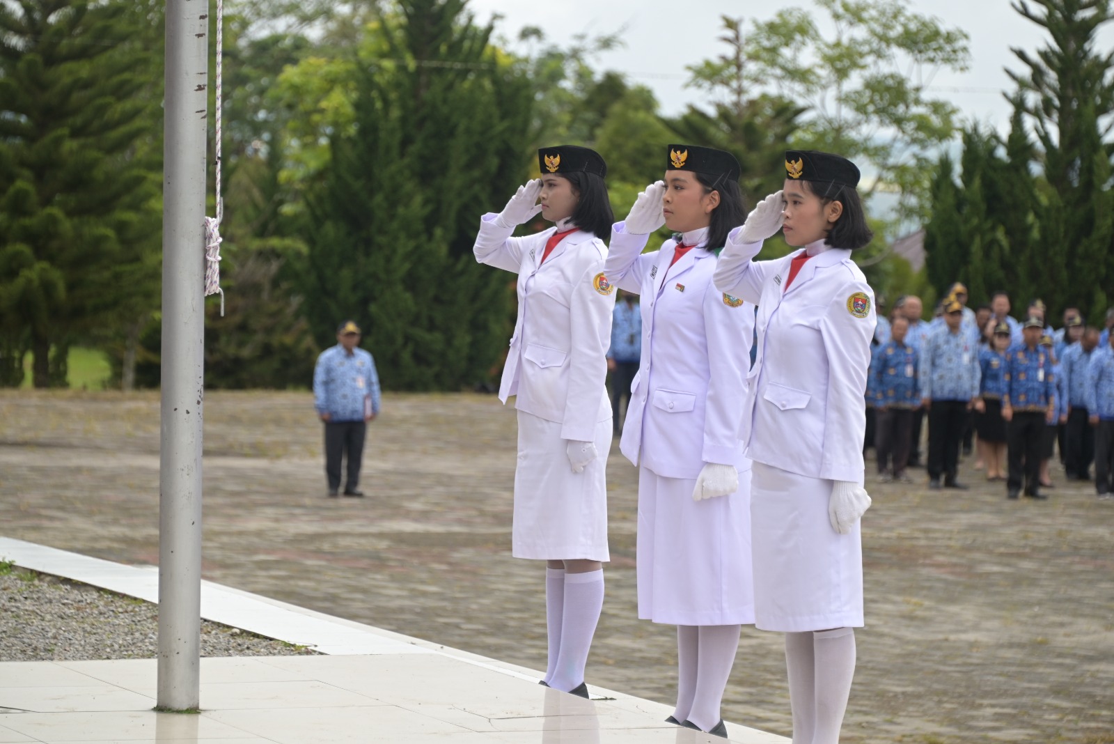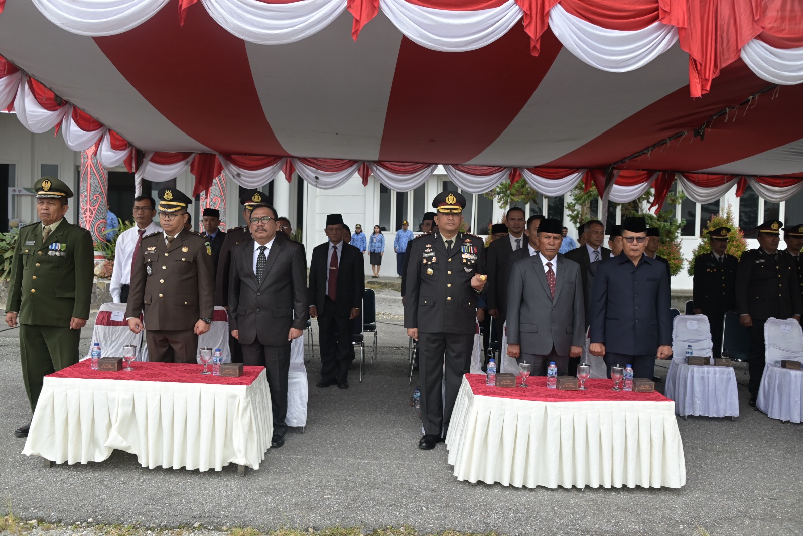 Dalam kegiatan itu, sebagai inspektur upacara Bupati Humbahas Dosmar Banjarnahor, SE dan komandan upacara KBO Reskrim Polres Humbahas Ipda Romi Ginting . Paduan suara dari SMAN 2 Lintongnihuta.