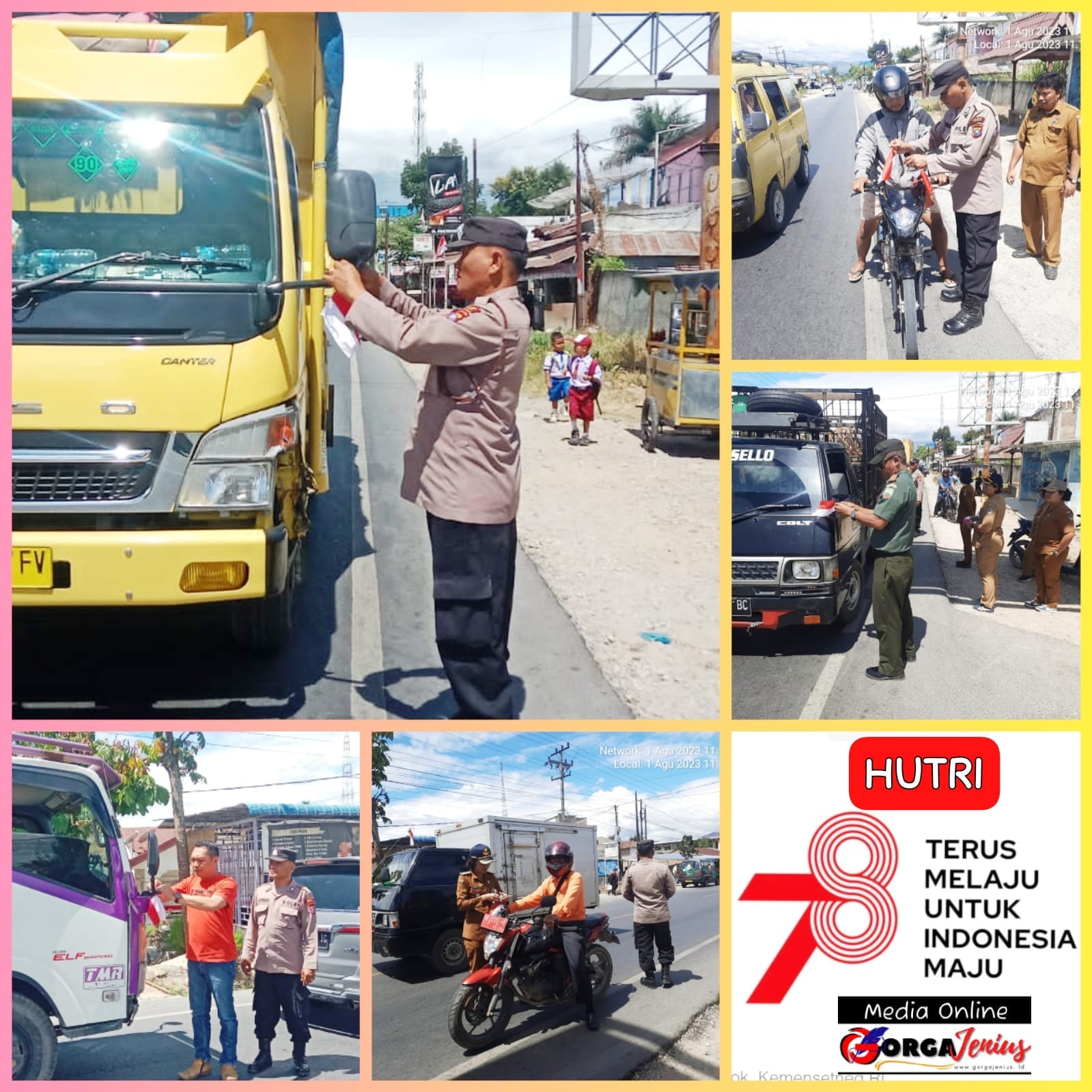 Bendera merah putih tersebut diberikan dan dipasangkan langsung oleh petugas dan unsur Forkopimca Laguboti pada kendaraan yang belum memasang bendera, Untuk ukuran bendera agak kecil dipasangkan pada spion kendaraan roda dua dan empat.