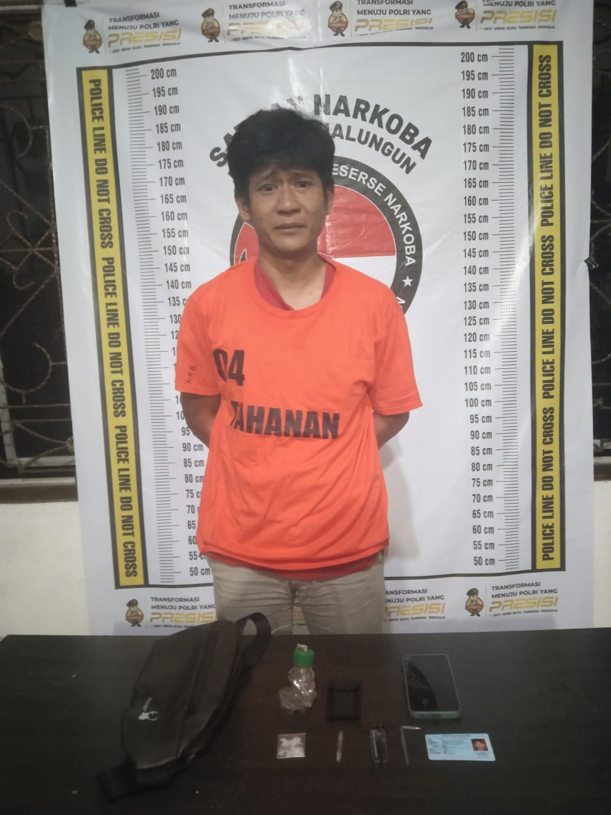 Tersangka diduga terlibat dalam kasus penyalahgunaan narkotika jenis sabu. Dalam penangkapan ini, Sat Narkoba juga berhasil mengamankan barang bukti berupa satu buah tas sandang berisi sabu seberat 1,16 gram dan 1,48 gram, alat hisap sabu (bong), satu buah mancis, dan satu unit ponsel android merk Oppo, “jelas AKP Ivan.
