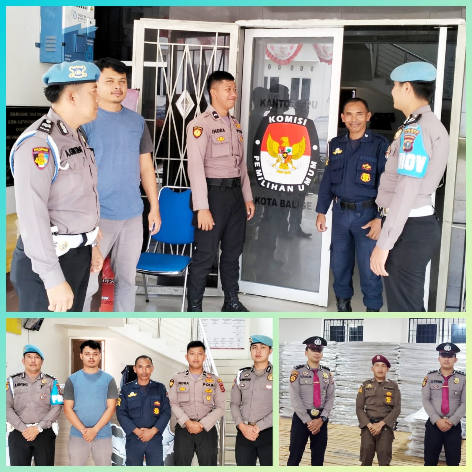 Personil Sipropam Polres Toba yang tergabung dalam Ops Mantap Brata Toba 2023-2024 melaksanakan pengawasan dan pengecekan terhadap personel yang bertugas dalam pengamanan Kantor Komisi Pemilihan Umum (KPU) Kabupaten Toba, Rabu (1/11/2023).
