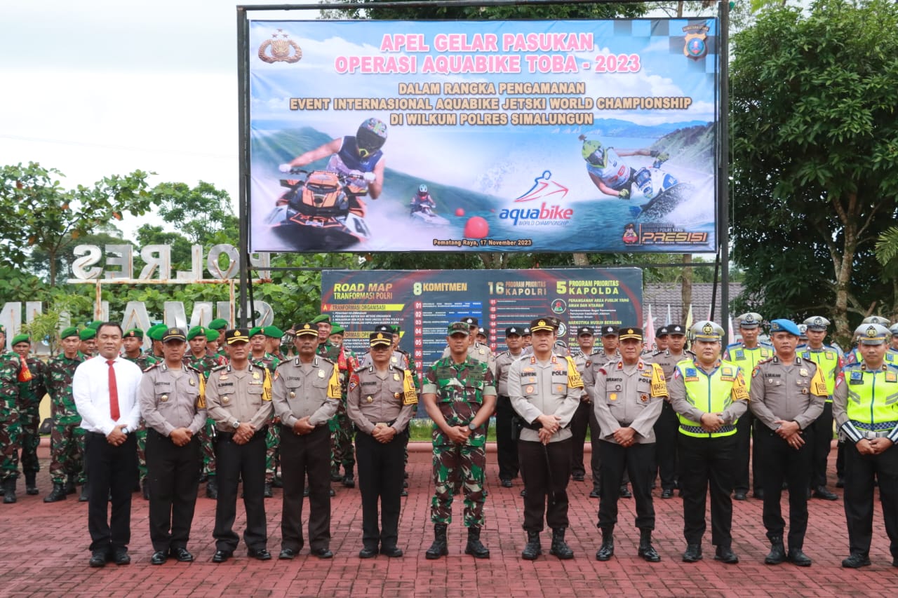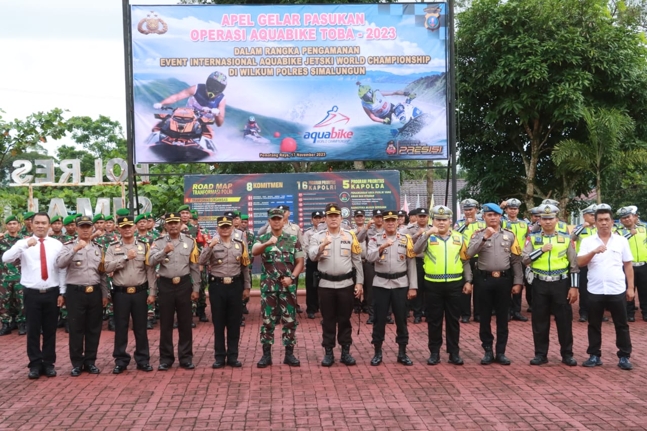 Kegiatan “Apel Gelar Pasukan Operasi Aquabike Toba-2023” dilaksanakan pada hari Jumat, 17 November 2023, mulai pukul 08.00 WIB di Lapangan Apel Mako Polres Simalungun, Jln.Jhon Horailam Saragih, Kecamatan Pamatang Raya Kabupaten Simalungun. Kegiatan ini merupakan bagian dari upaya pengamanan event internasional Aquabike Jetski World Championship yang akan diadakan di wilayah hukum Polres Simalungun.
