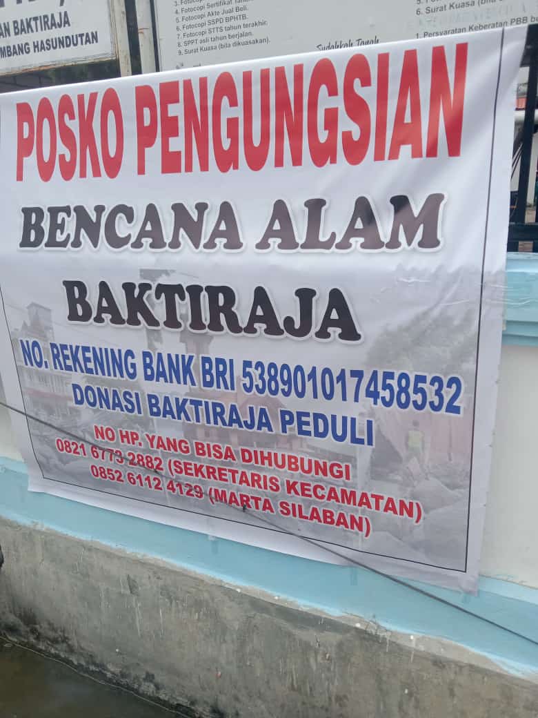 Donasi sosial ini diterima di Posko Bantuan Korban Bencana, oleh Camat Baktiraja (Uspika) setempat bersama Kepala Desa.