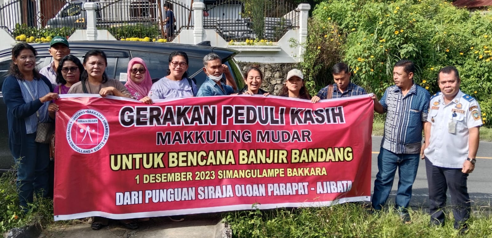 Punguan Pomparan Siraja Oloan (SRO) Wilayah Parapat-Ajibata, langsung mengantarkan bantuan donasi berupa Uang, bahan sembako dan pakaian layak pakai, kepada masyarakat korban bencana banjir bandang di Simangulampe, Bakkara, Humbang Hasundutan, Jumat (8/12/2023).