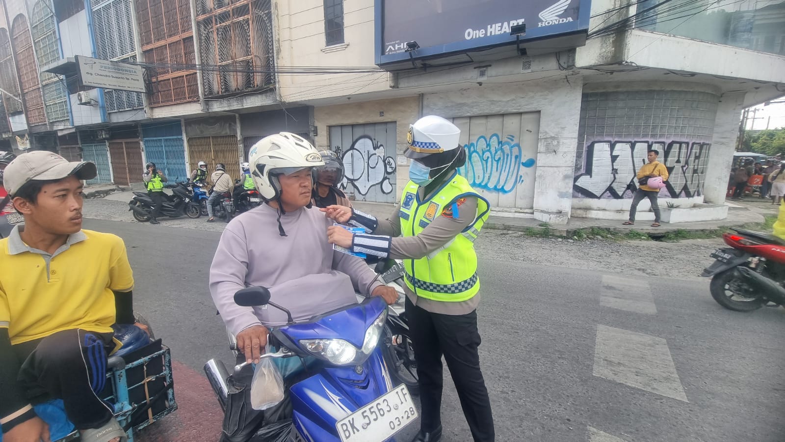 Kegiatan ini dilakukan secara humanis dan edukatif, dengan menyampaikan pentingnya keselamatan dalam berkendara, penggunaan helm, kelengkapan surat-surat kendaraan, serta kepatuhan terhadap rambu lalu lintas.