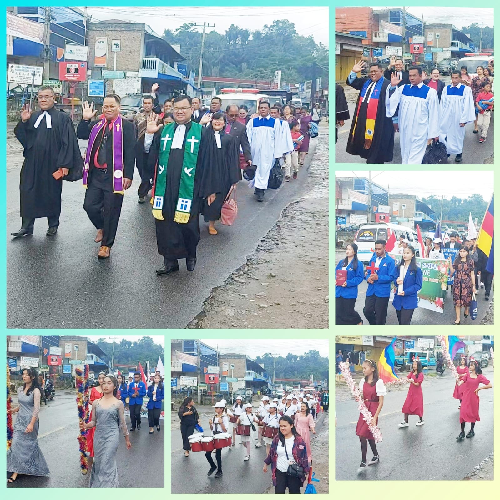 Acara Natal bersama ini, diawali dengan pawai (arak-arakan) sejak pukul 15.0p Wib dimana petugas liturgi, para Pendeta dari berbagai Denominasi Gereja diiringi dentuman Drumband dari Terminal Sosor Saba Parapat menuju venu OpenStage menambah susana meriah, semakin semangat walau desiran gerimis dengan bayang pelangi indah di langit Parapat.