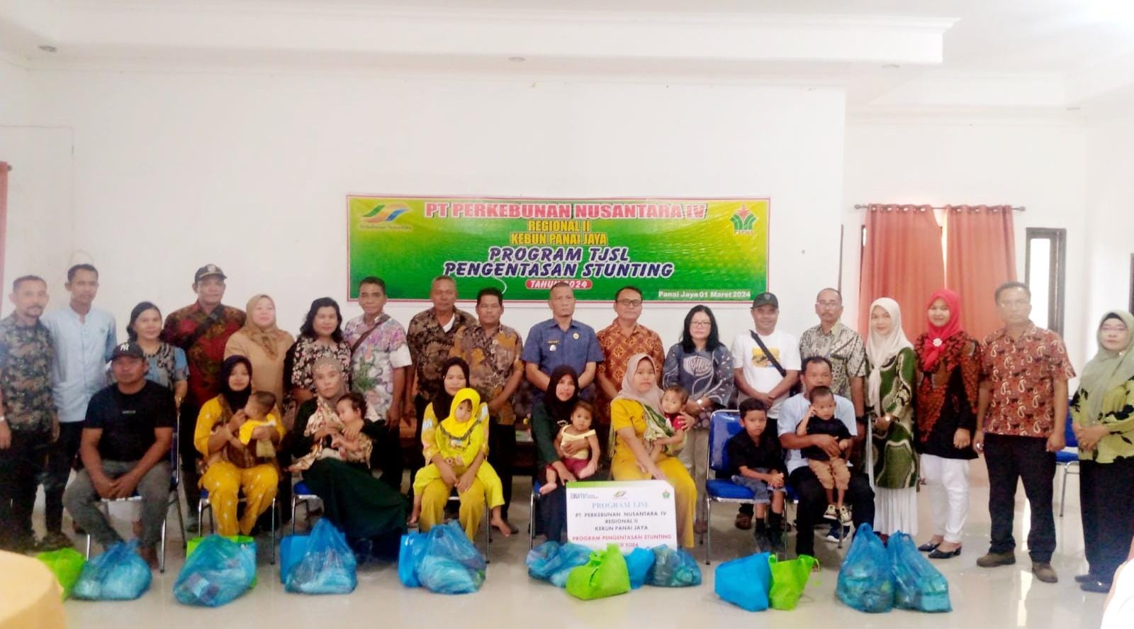 Dalam rangka mendukung Program Pemerintah dalam menurunkan Stunting 14 Persen secara Nasional di Tahun 2024, PT Perkebunan Nusantara IV (PTPN IV) Regional II melalui kebun Panei Jaya salurkan bantuan makanan yang Bergizi kepada masyarakat di sekitar kebun Panei Jaya sebanyak 8 orang dengan rincian Desa Sei Pelancang sebanyak 4 orang dan Desa Bagan Bilah sebanyak 4 orang.