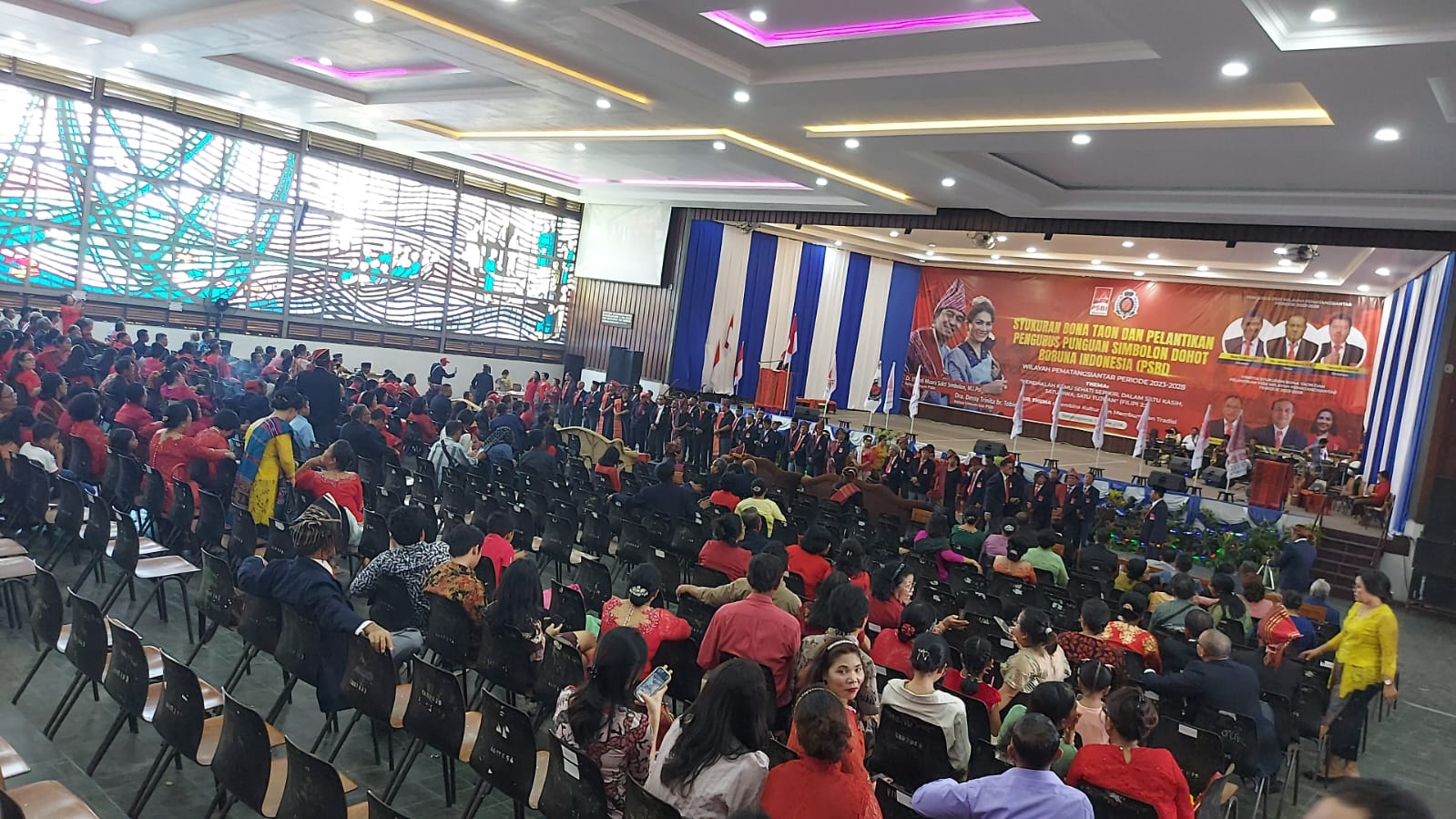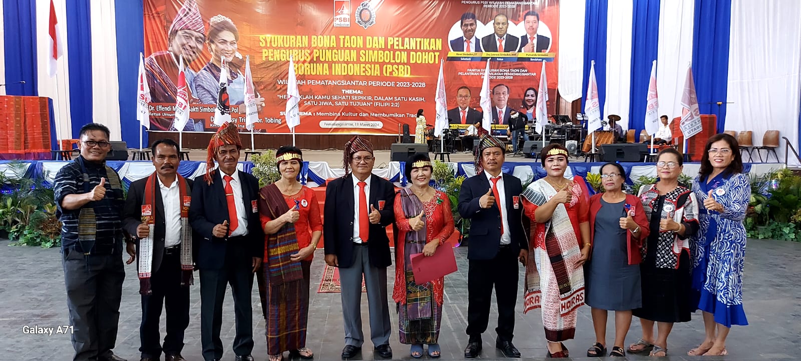 Ketua Umum Punguan Simbolon Dohot Boruna Indonesia (PSBI) Dr. Effendi MS Simbolon melalui Ampera Simbolon DPP PSBI Depertemen Kominfo hadir melantik Pengurus PSBI Wilayah Kota Pematang Siantar Periode 2023-2028, di Aula Nomensen Pematang Siantar, Senin (11 Maret 2024).