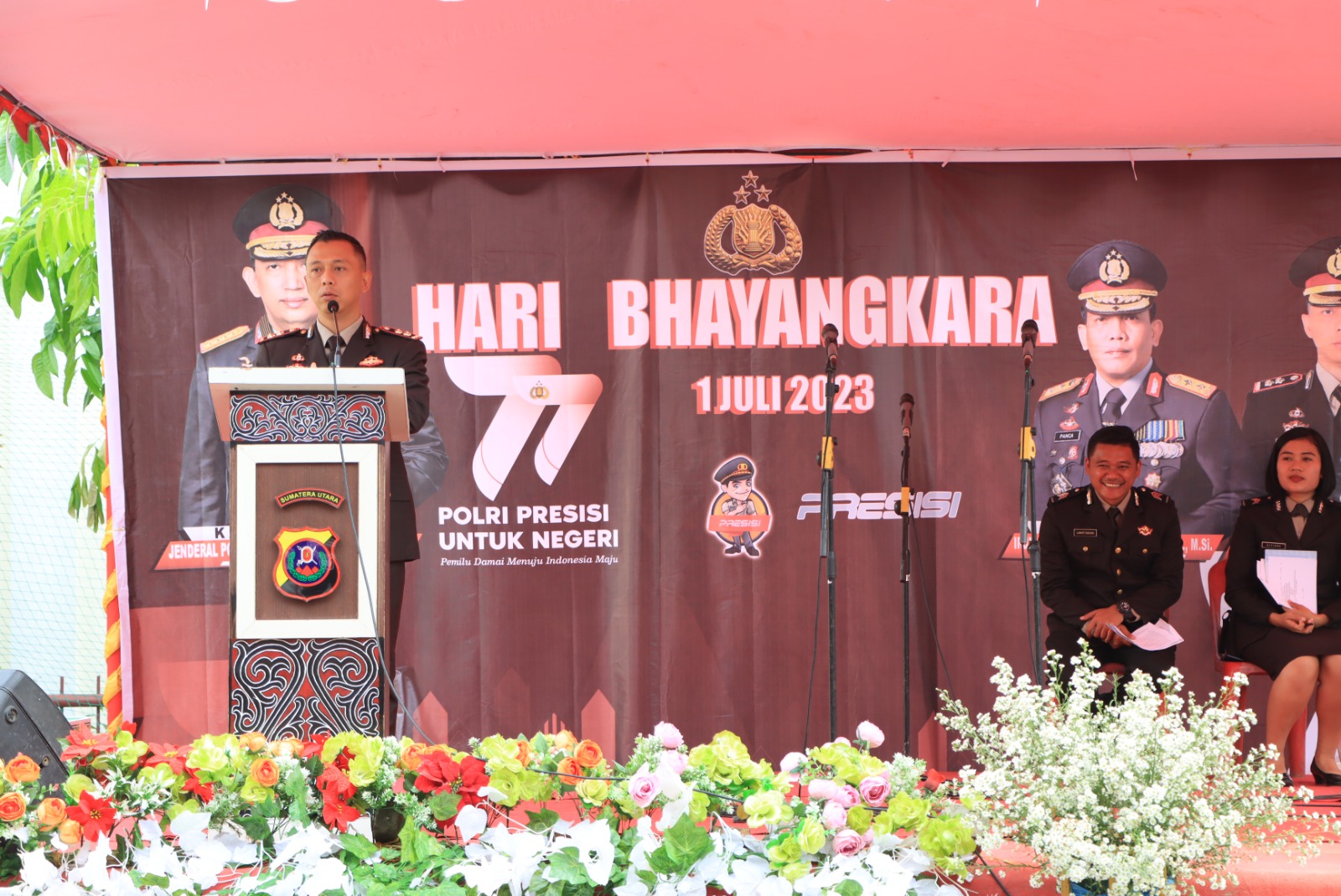 Pembacaan Amanat Kapolda oleh Kapolres Samosir AKBP Yogie Hardiman, S.H.,S.I.K.,M.H menyampaikan beberapa hal diantaranya, Kapoldasu yang kini masih dijabat Irjend Pol Panca Simanjuntak mengucapkan: