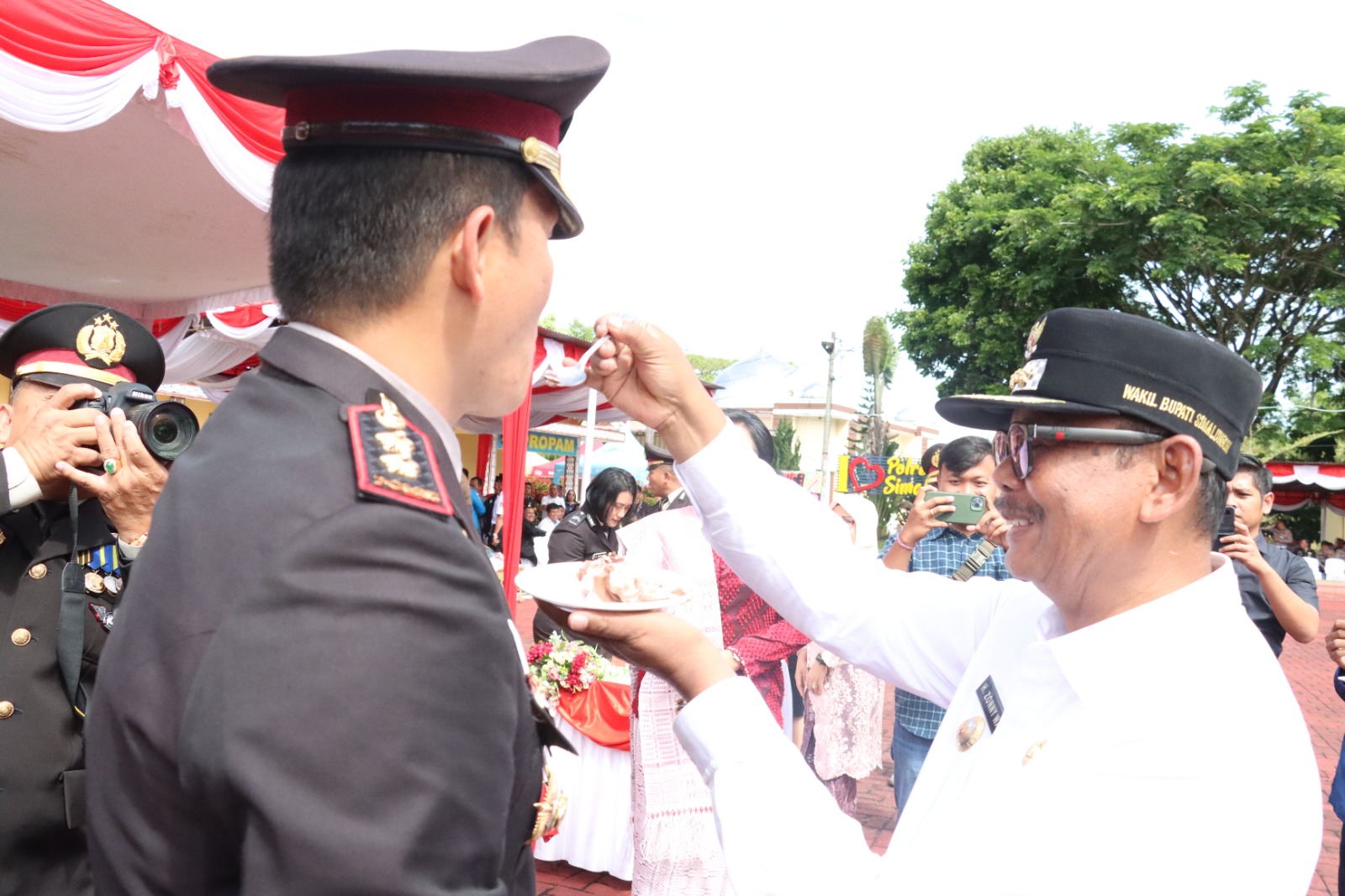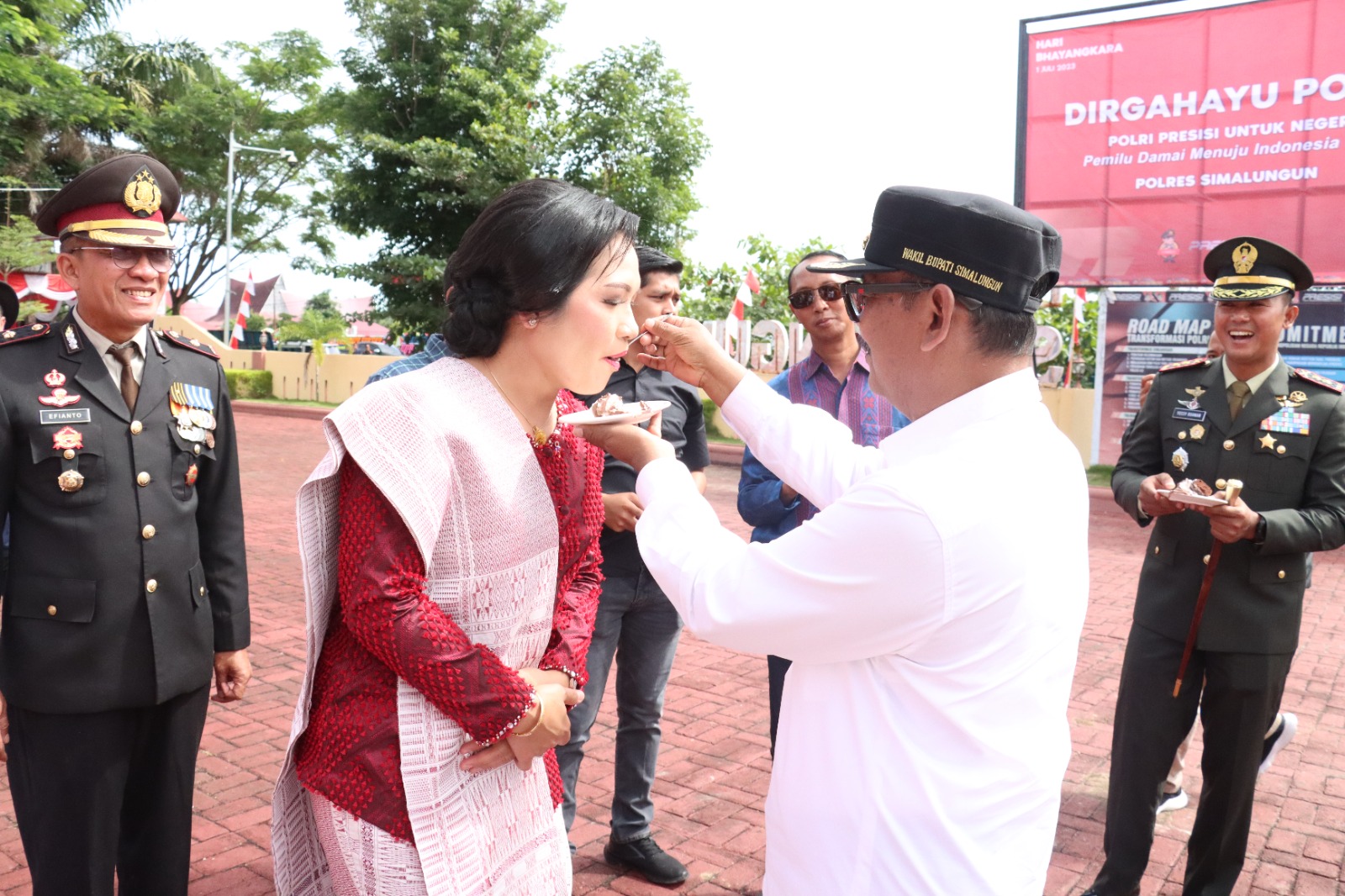 Dalam kesempatan tersebut Kapolres Simalungun mendapat suprise kue dari Dandim 0207/Simalungun dan Suapan kue dari Wakil Bupati Simalungun yang di saksikan oleh seluruh undangan yang hadir.
