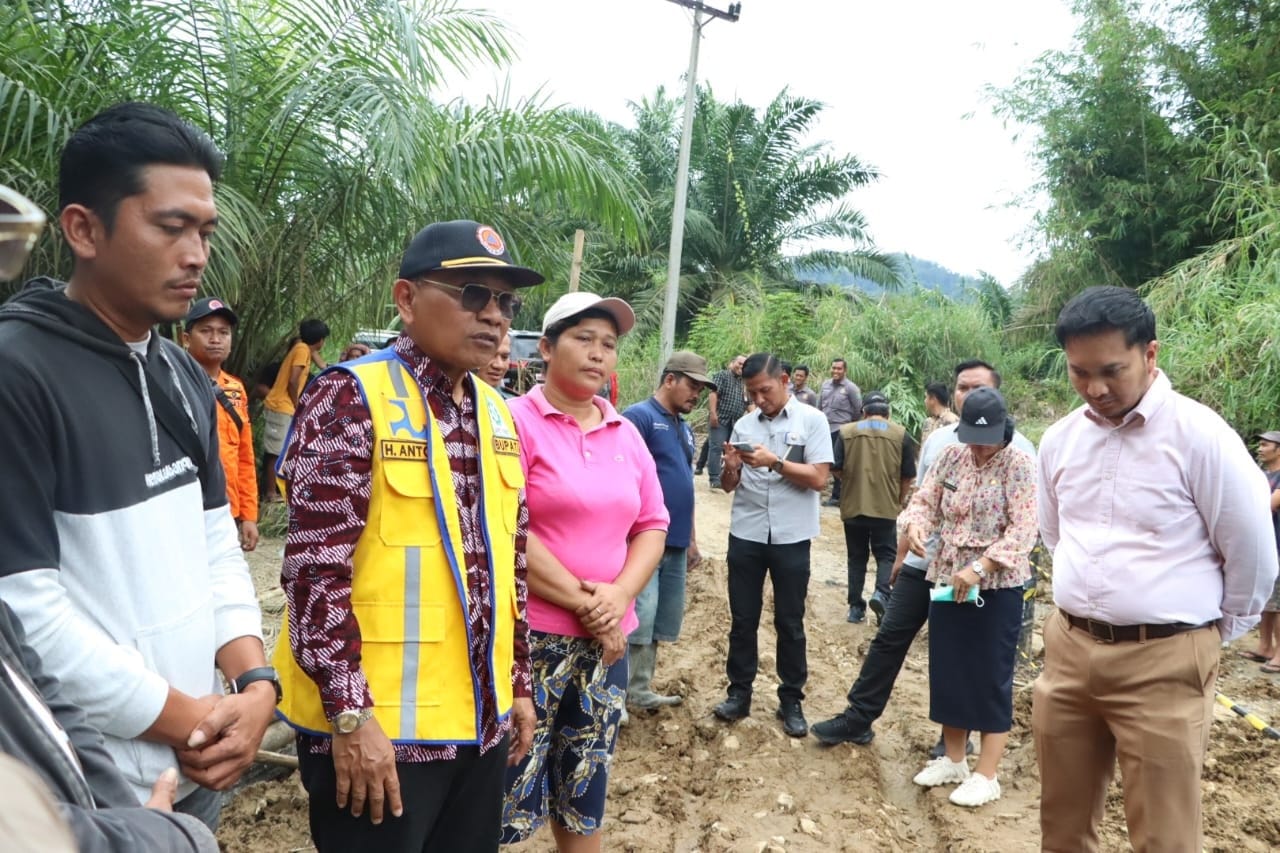 Tinjau Jalan Provinsi Putus Akibat Longsor, Bupati Simalungun Perintahkan Kadis PUTR Lakukan Perbaikan Sementara