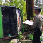 Polres Samosir Bantu Evakuasi Penumpang Bus KUPJ Terjungkal di Tele, Penumpang Luka-Luka
