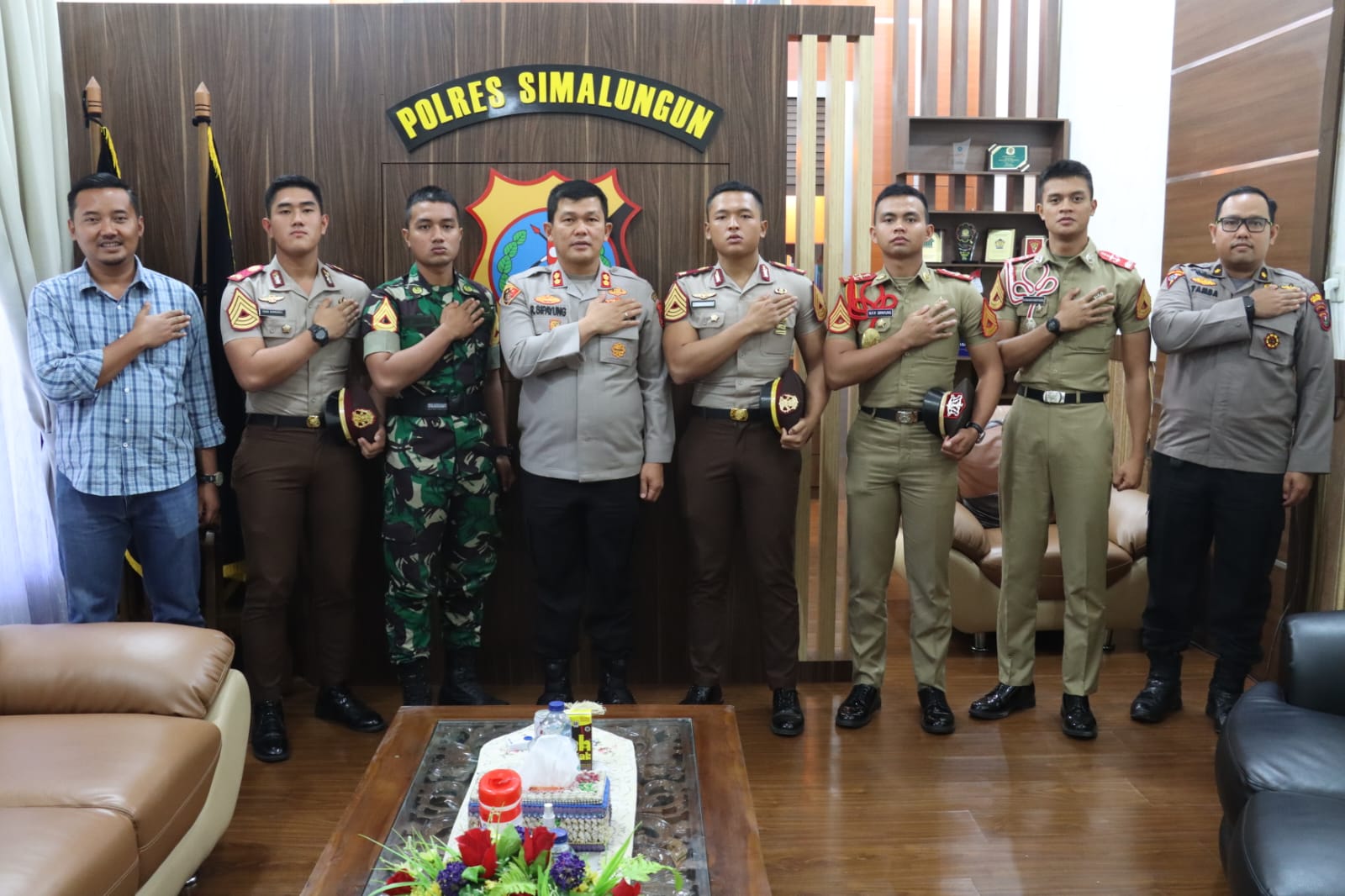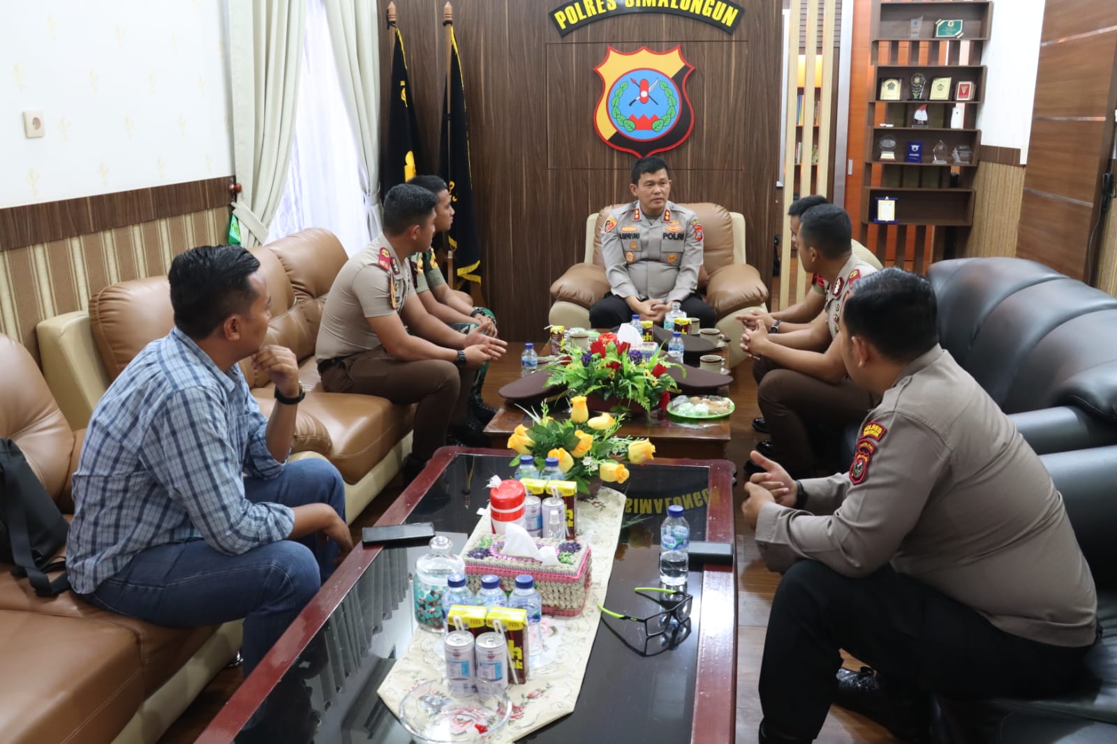 Kapolres Simalungun, AKBP Ronald F.C Sipayung, S.H., S.I.K., M.H., menerima kunjungan silaturahmi dari para siswa taruna Akademi Kepolisian (AKPOL) dan Akademi Militer (AKMIL) asal Kabupaten Simalungun. Kunjungan ini berlangsung pada hari Selasa, 25 Juli 2023, pukul 10.30 WIB di Ruang Kerja Kapolres Simalungun Mako Polres Simalungun, Jln.Jhon Horailam Saragih, Kec. Pem.Raya Kabupaten Simalungun.