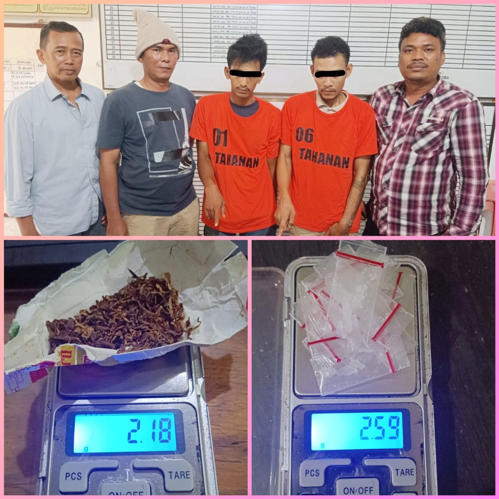 Penggerebekan yang dipimpin oleh AKP Juliapan Panjaitan, SH, berhasil mengamankan tiga tersangka laki-laki di sebuah rumah di Jalan Pulo Lawan Huta VI, Nagori Bagunung, diantaranya “DR(35)”alias Dalil, “W(37)” alias Iyan serta “RS(29)”alias Geleng, ketiganya merupakan warga Jalan Pulo lawan Huta-VI.