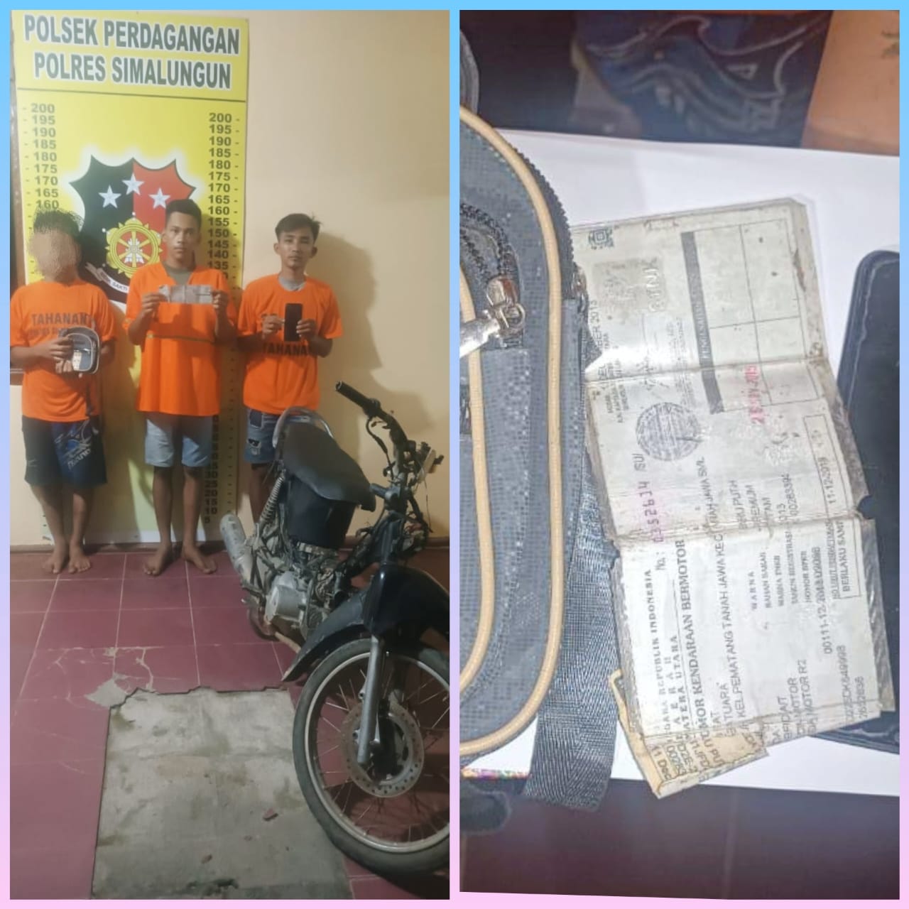 Kapolsek Perdagangan AKP Ibrahim Sopi, S.H., menjelaskan kronologi penangkapan berawal dari laporan korban Tia Sesami Ganesa Siwi pada 4 November 2024. “Korban melaporkan kehilangan handphone Vivo Y20s, tas berisi uang Rp 1.340.000, STNK Honda Beat, dan tabung gas 3 kg. Total kerugian ditaksir mencapai Rp 3.500.000,” ujarnya.