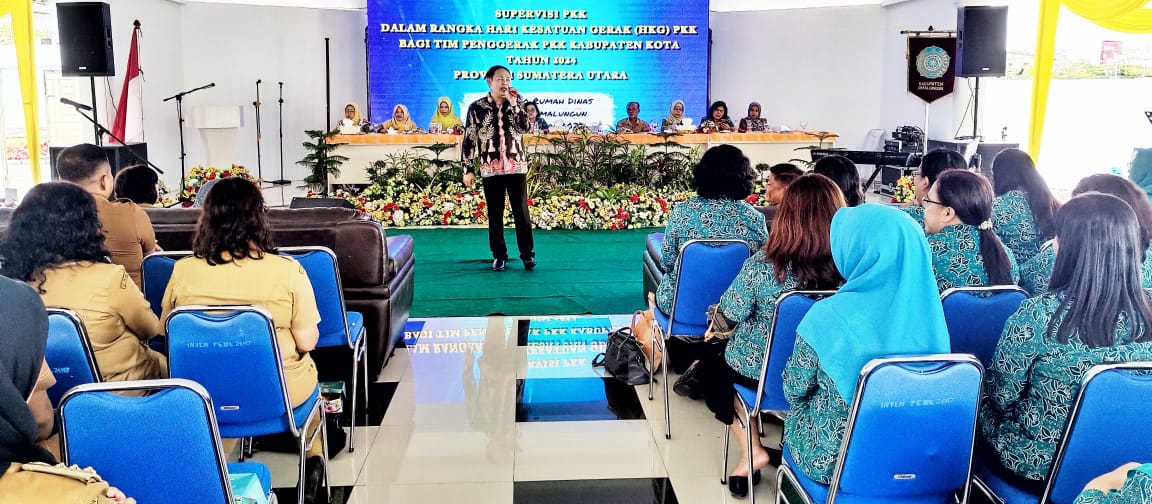 Tim supervisi Provinsi (Prov) Sumatera Utara (Sumut) desa/kelurahan percontohan pelaksanaan tertib administrasi, pola asuh anak dan remaja, UP2K PKK, hatinya PKK dan IVA test Tahun 2024 melakukan kunjungan di Kabupaten Simalungun.