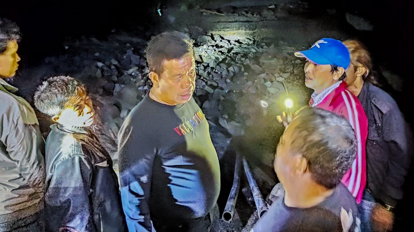 Bupati Simalungun Radiapoh Hasiholan Sinaga turun ke lokasi banjir yang terjadi di Kecamatan Haranggaol Horisan, Simalungun, Sumut, untuk melakukan peninjauan pasca banjir, Rabu malam (20/12/2023).