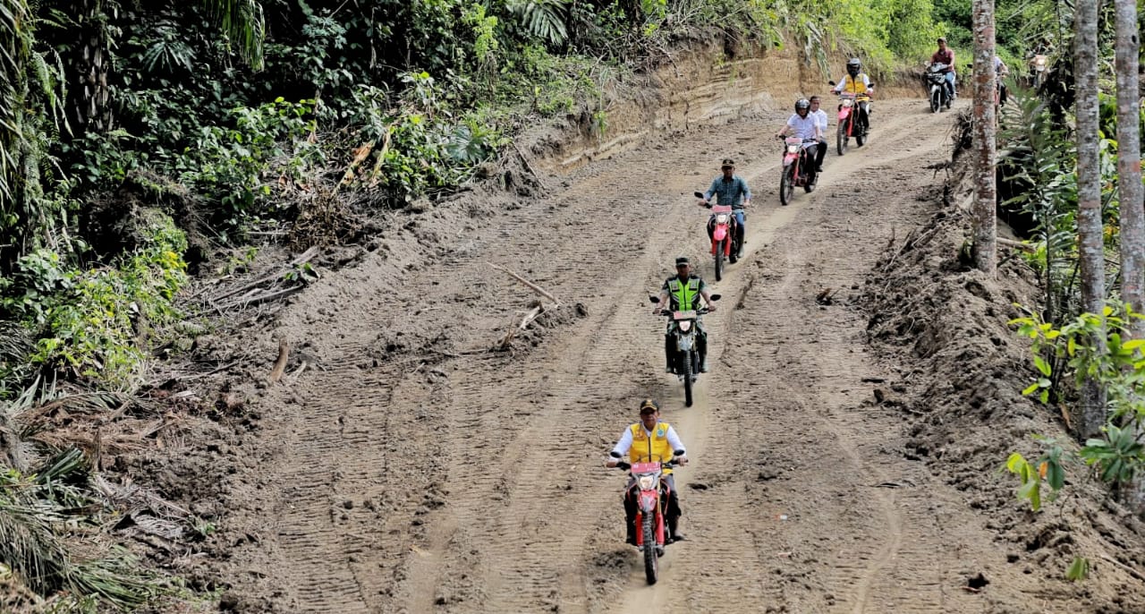 Usai menyampaikan kata sambutan Bupati Simalungun, Dandim 02/07 Simalungun dan Ketua DPRD Simalungun langsung meninjau pembukaan jalan tersebut dengan menggunakan motor trail.