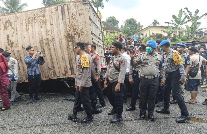 Kepolisian Resor Simalungun yang dipimpin langsung oleh Kapolres AKBP Choky Sentosa Meliala, S.I.K., S.H., M.H., hari ini turun langsung ke lokasi kecelakaan lalu lintas yang menggemparkan di Jalan umum Km 24-25 arah Pematangsiantar menuju Pematangraya. Musibah yang terjadi pada Rabu sekira pukul 13.30 WIB tersebut mengakibatkan 6 orang meninggal dunia dan 4 lainnya menderita luka ringan.