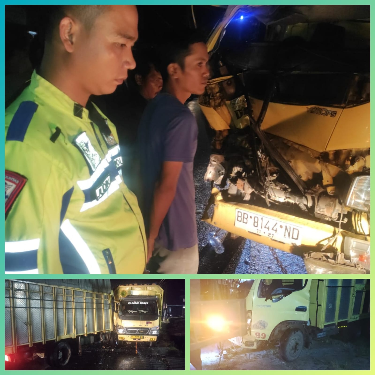 Kecelakaan lalu lintas terjadi antara truk Canter No Pol 8144 ND tabrak Samping Truk Logging No Pol No Pol BK 8486 ET. Kejadian kecelakaan ini terjadi di Jalan Siponggol Dolok Kecamatan Siantar Narumonda Kabupaten Toba Provinsi Sumatera Utara, Selasa Malam (10/10/2023) sekira pukul 20.00 Wib.