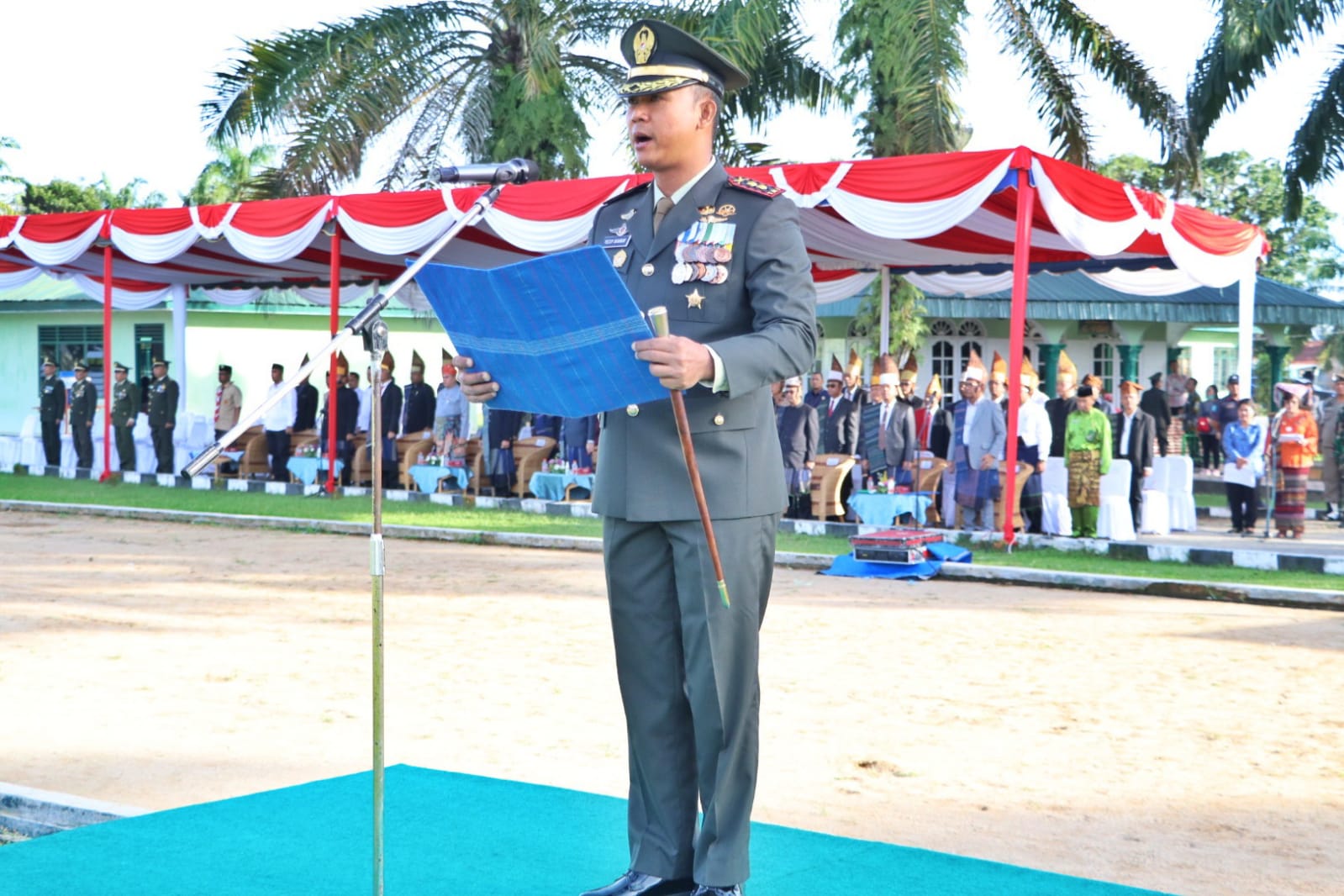 Bertindak sebagai Inspektur Upacara (Irup) Dandim 0207/Sml Letkol Inf Hadrianus Yossy, sebagai Komandan Upacara Kapten Inf Bangsawan Harahap (Danramil 16/Panei Tongah) dan Perwira Upacara Kapten Arm MS Damanik (Pasi Pers KOREM 022/PT).