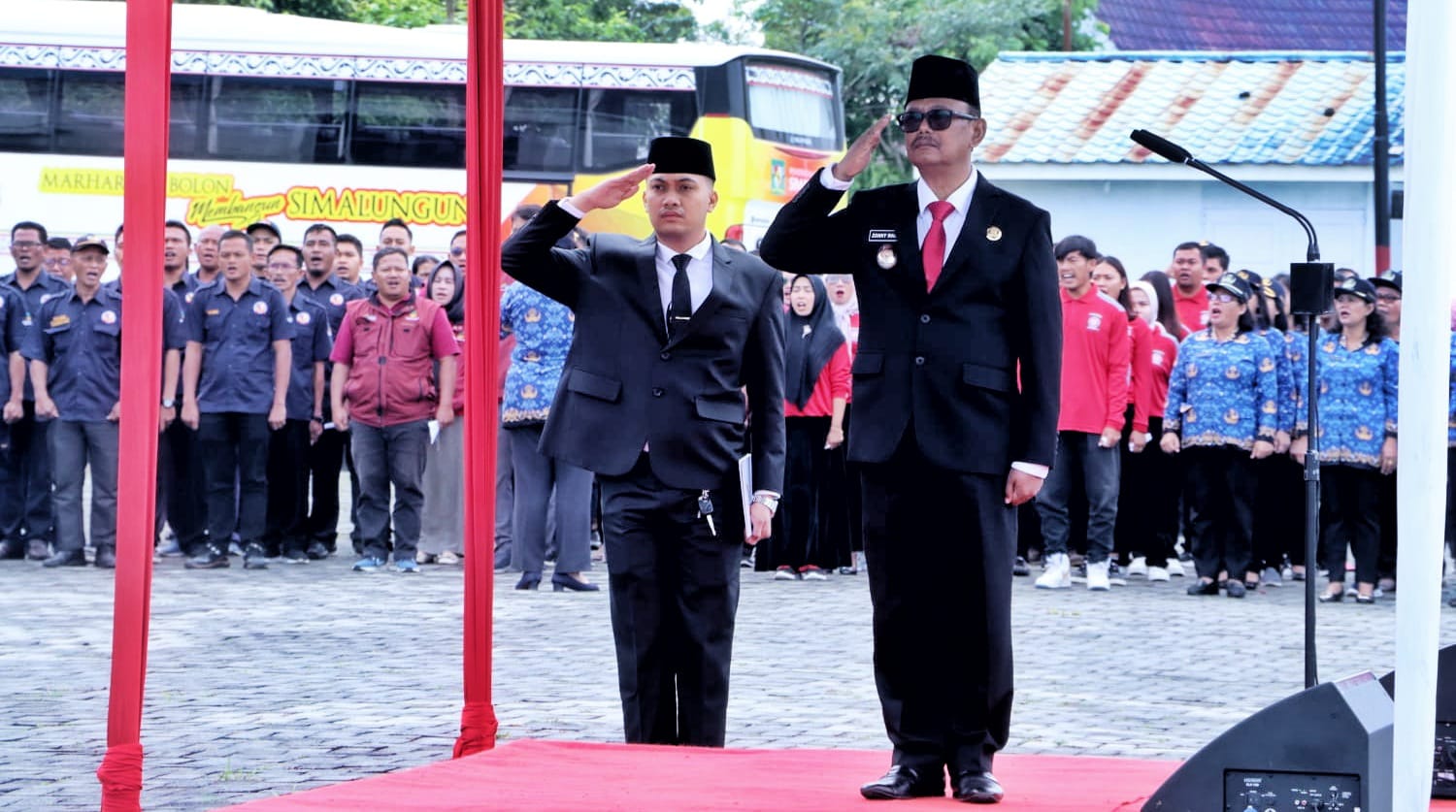 Upacara tersebut diikuti oleh para pejabat tinggi pratama, administrator, pengawas dan fungsional dilingkungan Pemkab Simalungun, Satpol PP, OKP, Ormas dan Pramuka.