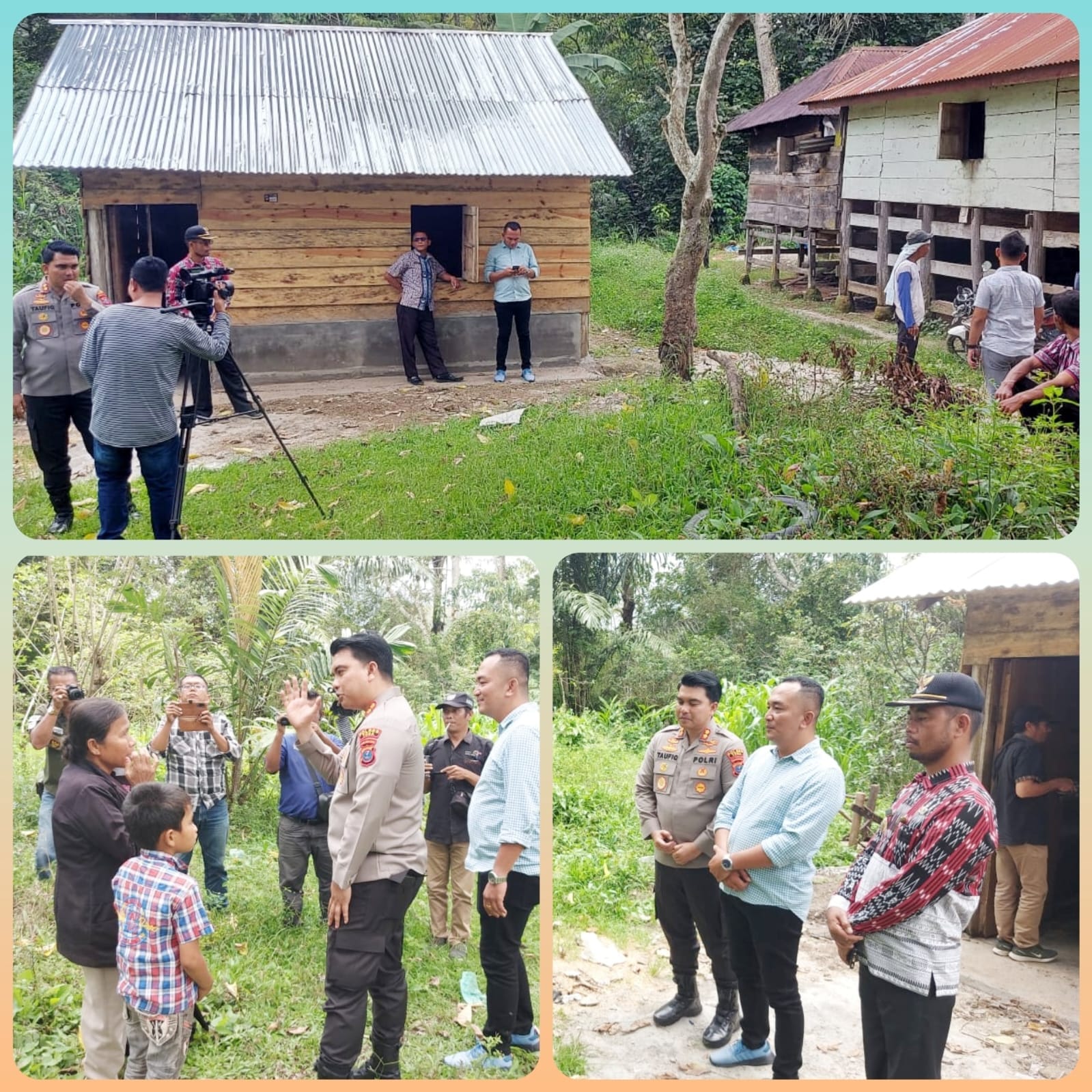 Kapolres Toba AKBP Taufiq Hidayat Thayeb, menyambangi kediaman rumah Kartini Manurung (43) sudah rampung diperbaiki di Desa Sibaruang Kecamatan Lumbanjulu Kabupaten Toba.