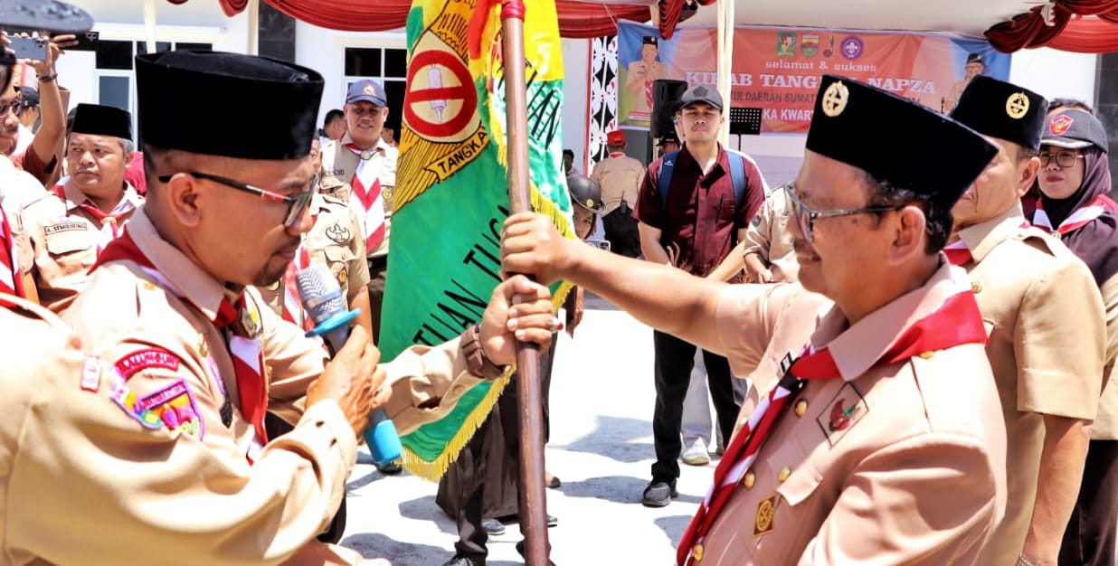 Wakil Bupati Simalungun H Zonny Waldi selaku Ka.Kwarcab Gerakan Pramuka menghadiri kegiatan Kirab Satgas Tangkal Napza Kwarda (Kwartir Daerah) Sumatera Utara di Kecamatan Bandar, Simalungun, Sumut, Kamis (25/07/2024).