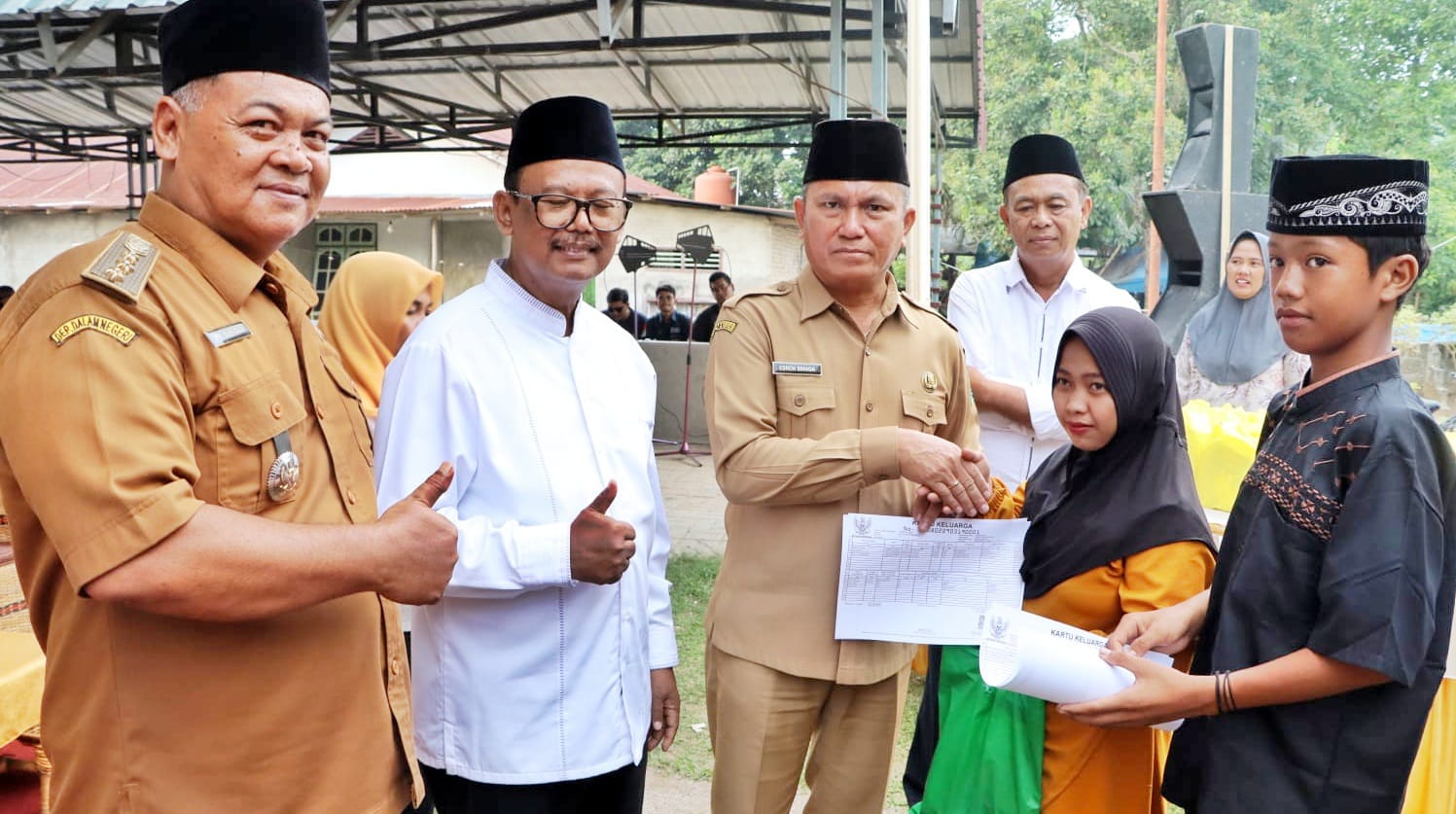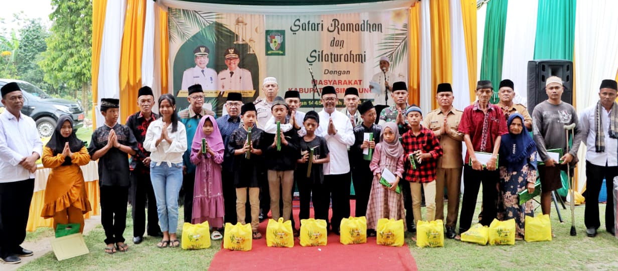 Kegiatan safari ramadhan yang dirangkai dengan silahturrahmi dan buka puasa bersama itu ditandai dengan pemberian santunan kepada anak yatim dan kaum duafa serta penyerahan hasil kepengurusan administrasi kependudukan kepada masyarakat oleh Wakil Bupati dan Forkopimca.
