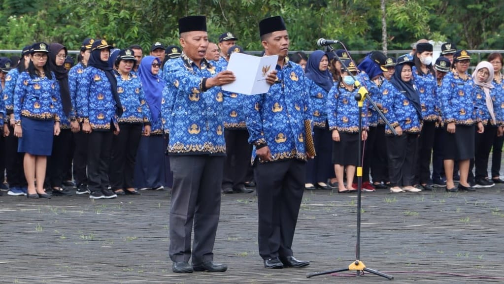 Pembacaan UUD Tahun 1945 dilaksanakan Sudarno (Staf Dinas Koperasi dan UKM) oleh dan pembacaan polio Panca Prasetya Korpri dilaksanakan oleh One Three Seven Sinaga (Staf BPBD).