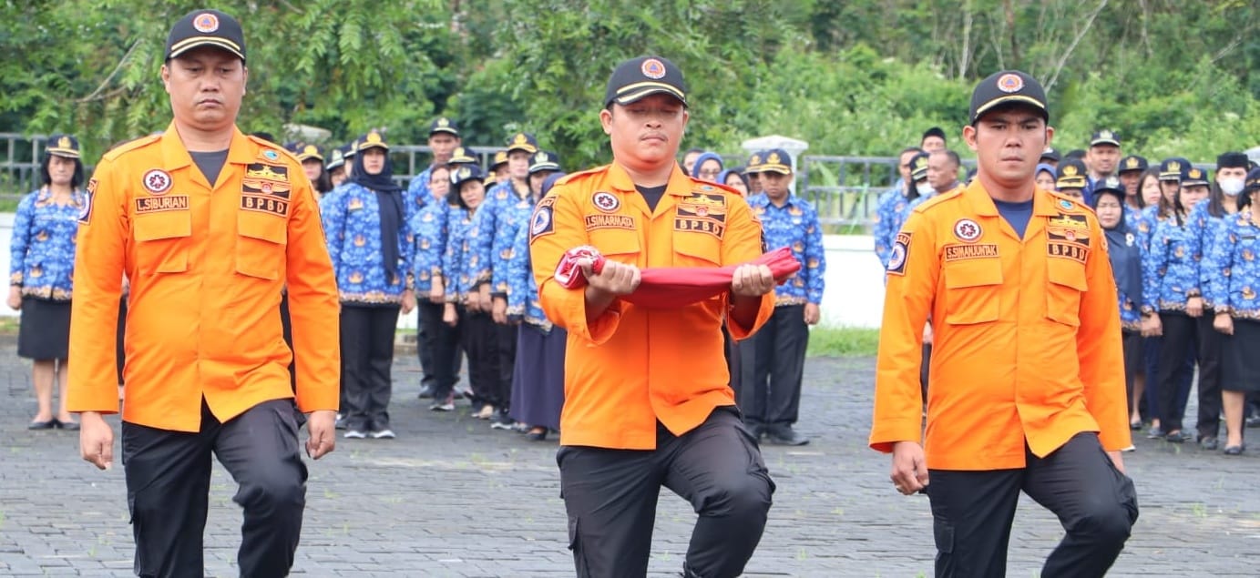 Ditandai dengan pengibaran Bendera Merah Putih oleh Anggota BPBD diiringi lagu kebangsaan Indonesia Raya.