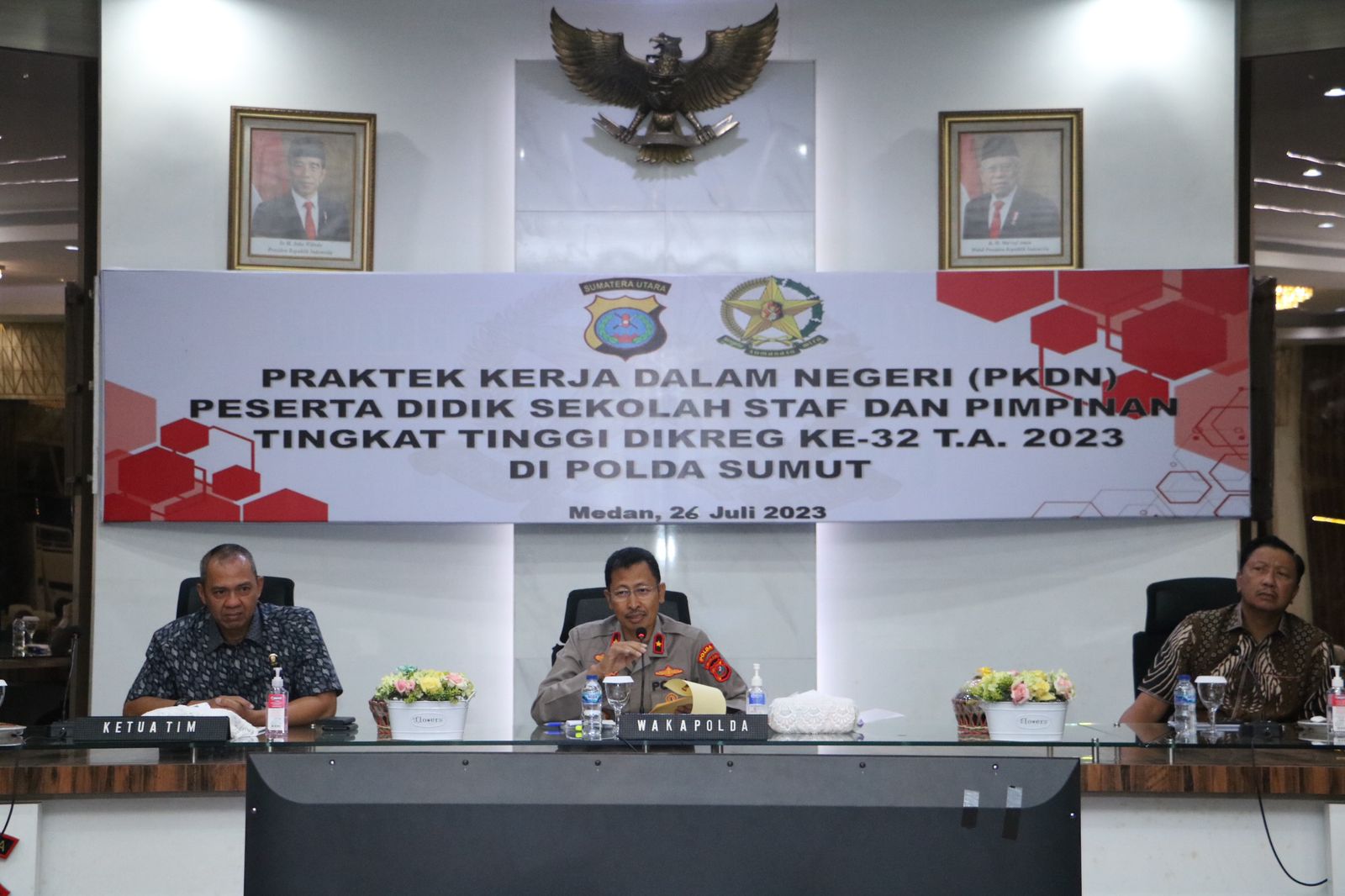Wakapolda Sumut Brigjen Pol Drs. Jawari S.H., M.H. menutup kegiatan Praktek Kerja Dalam Negeri (PKDN) peserta didik Sekolah Staf dan Pimpinan Tinggi (SESPIMTI) Polri pendidikan reguler ke 32 di wilayah hukum Polda Sumatera Utara bertempat di Aula Catur Prasetya Mapoldasu, Rabu (26/07).