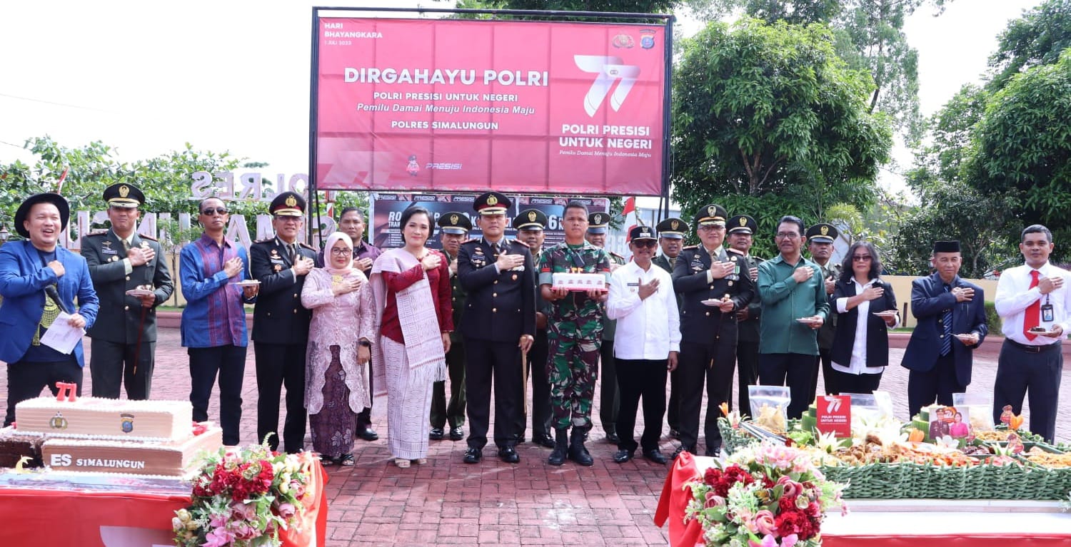 Bupati Simalungun diwakili Wakil Bupati H Zonny Waldi menghadiri Hari Ulang Tahun(HUT) Bhayangkara Ke 77 Tahun 2023, berlangsung di Mapolres Simalungun, Jln Jon Horailam Saragih Pematang Raya, Kecamatan Raya, Kabupaten Simalungun, Sumut, Sabtu (1 Juli 2023).
