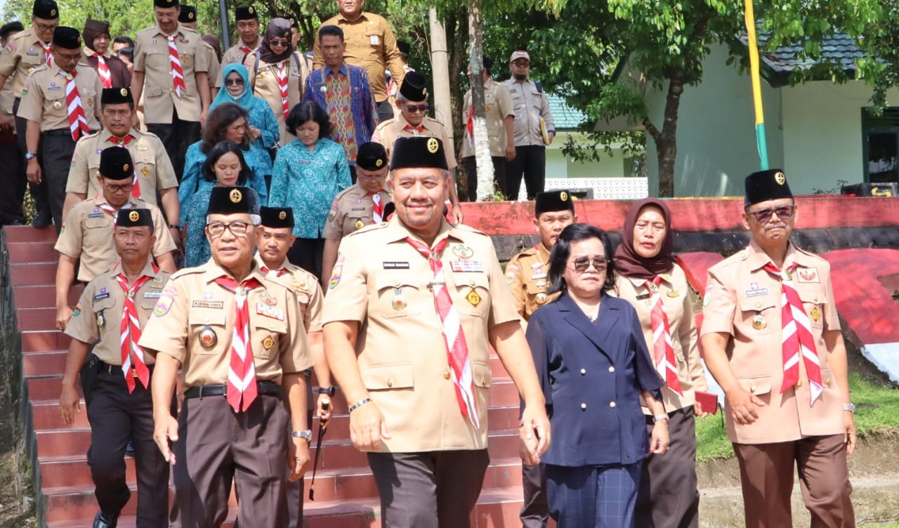 Bupati Simalungun diwakili Wakil Bupati H Zonny Waldi selaku Ketua Kwartir Cabang (Ka. Kwarcab) Gerakan Pramuka Kabupaten Simalungun menghadiri kegiatan Karang Pamitran Daerah Sumatera Utara yang di pusatkan di Markas TNI AD Yonif 122/TS, Kecamatan Siantar, Simalungun, Sumut, Kamis (25/5/2023).