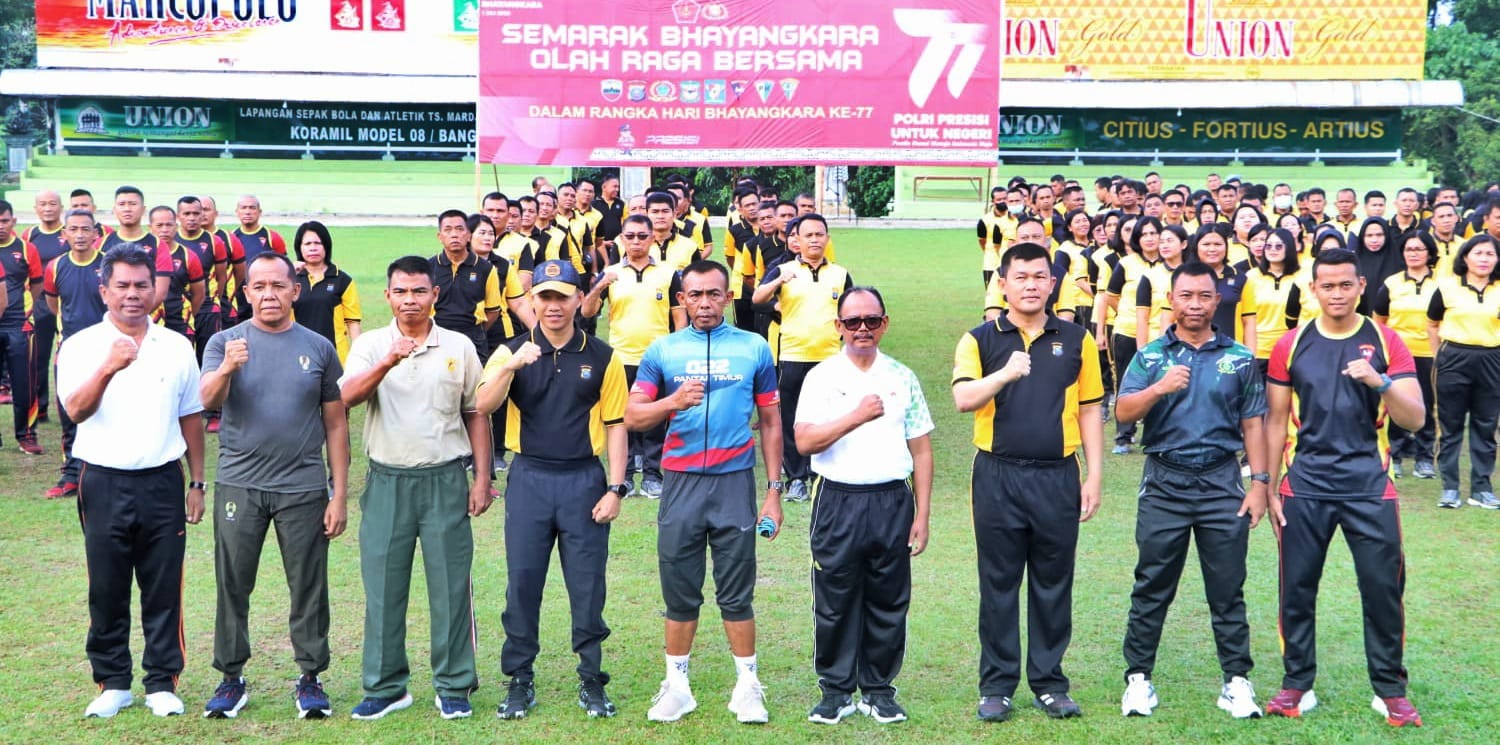 Olahraga bersama yang dilaksanakan oleh Polres Simalungun dalam rangka Hari Bhayangkara ke-77 Tahun 2023 dan HUT Ke 73 Kodam I/BB dengan tema “Bersinergi Untuk Negeri”.