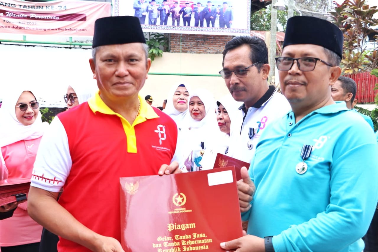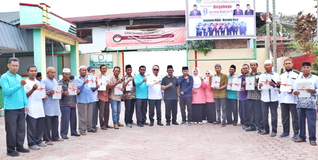 Penghargaan dan sertifikat tanah ini di berikan langsung oleh Wakil Bupati H Zonny Waldi, Sekda Esron Sinaga, Kakan Kemenag Ahmad Sofian, Kakan ATR/BPN Moren Naibaho.
