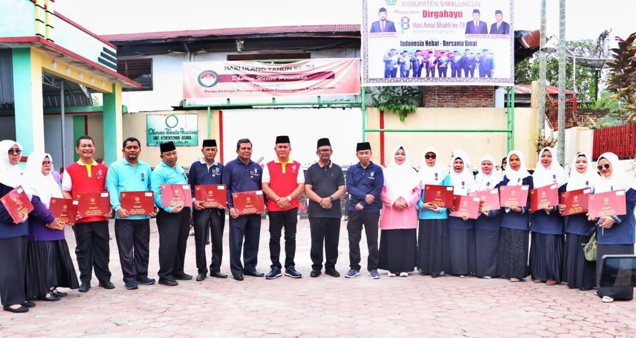 Dirgahayu Hari Amal Bhakti tersebut mengusung tema: “Indonesia Hebat bersama umat”, berlangsung di Halaman Kantor Kemenag Kabupaten Simalungun, Kecamatan Siantar, Sumut, (3/1/2024).