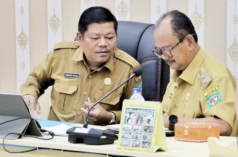 Rapat tersebut berlangsung di ruang rapat Kantor Bupati Simalungun, Pematang Raya, Kabupaten Simalungun, Sumut, Senin (29/01/2024).